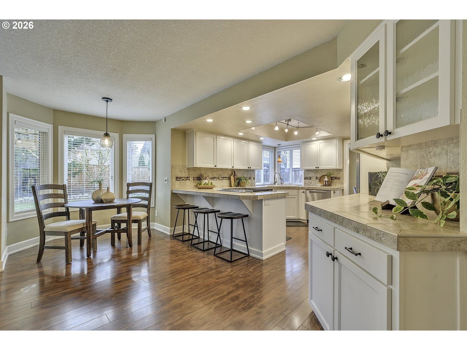 This beautiful 4-bdrm home is located on a cul-de-sac, in a sought-after neighborhood. Traditional floor plan features vaulted ceilings, large windows & architectural details. Thoughtful updates, an oversized garage & spacious backyard provide comfort & functionality. Living room w/fireplace opens to formal dining room. Kitchen w/eating bar & walk-in pantry is updated w/premium applcs including Sub-Zero refrigerator (2022), Wolf gas range (2021) & Miele dishwasher (2024). Dining nook has bay window & opens to family room w/brick fireplace & slider to backyard. Primary suite features double closets, (one is walk-in), & updated bathroom w/quartz cntrtps, dual sinks, tiled shower & free-standing tub. Fenced backyard has covered patio (2023), raised beds & sprinklers. 3-car garage. Ring doorbell. Simply safe alarm. Washer & dryer included. Gas water heater & gas furnace (2024). AC (2022). Located near schools, Jurgens park, shopping, dining & commuter transportation.