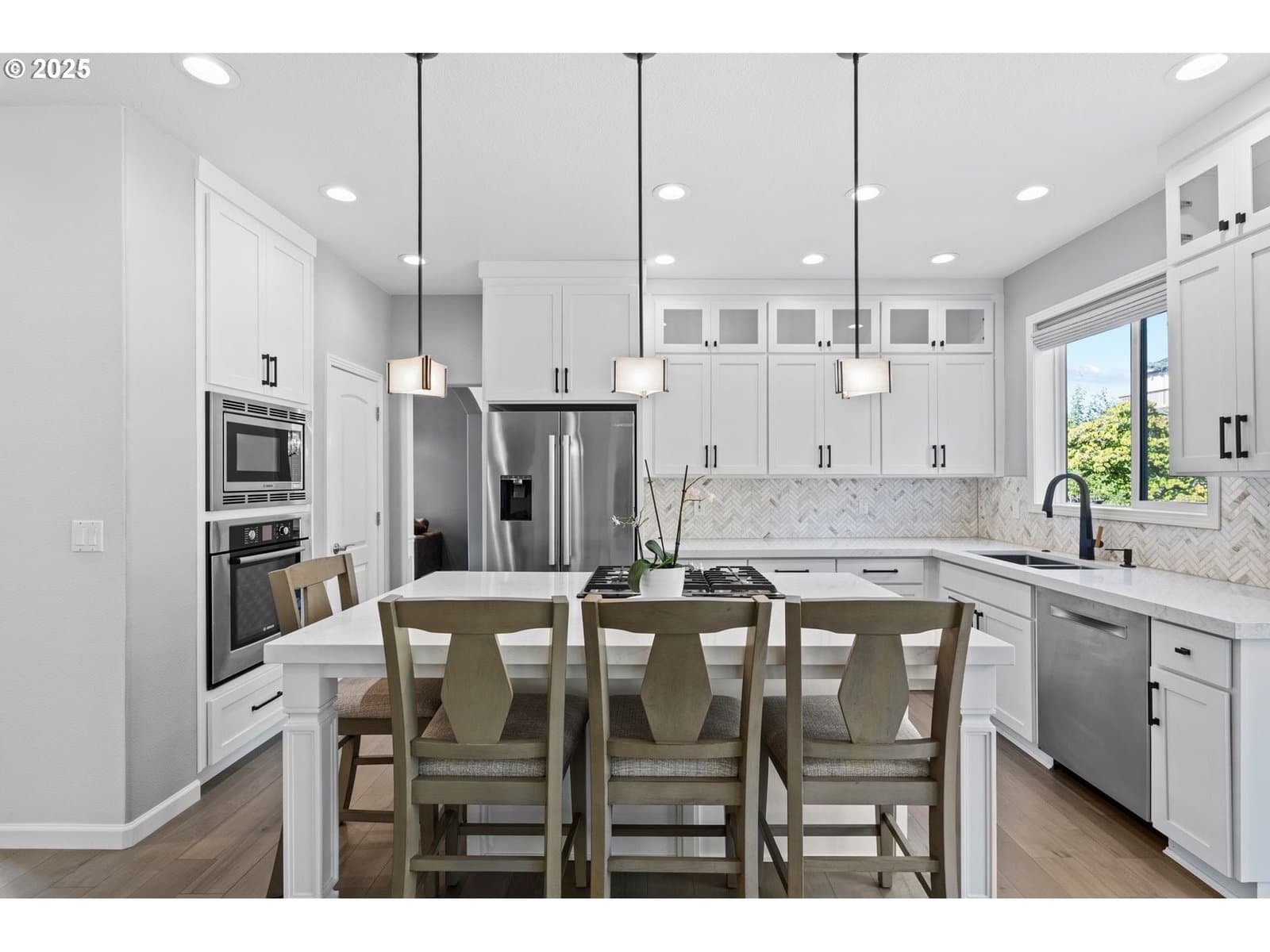 << Back on market due to buyer getting cold feet >>. Discover this beautiful Traditional Craftsman, a home where sophisticated style meets comfortable living. Situated on a peaceful, no-through street, this home is defined by its elegant upgrades, meticulous attention to detail, and a layout filled with natural light.The main floor welcomes you with a dramatic sitting area, a formal dining room and one bedroom followed by a magnificent gourmet kitchen. This is the heart of the home, featuring a marble backsplash, quartz countertops, a large island with a gas cooktop, and a full suite of Bosch appliances. The open-concept kitchen and family room is an ideal space for daily living, with easy access to the private backyard patio.On the main level, you'll also find a versatile room perfect for a home office or guest room, an updated half bath with a bidet and heated seat, and a laundry room with a utility sink. Storage is plentiful with a three-car garage and an additional 8x10 shed.The second level includes a bright bonus room, a guest bedroom and a luxurious primary suite. The en-suite bathroom is a true sanctuary, complete with a massive tiled shower, a large soaking tub, heated tile floors, and a spacious walk-in closet with custom floor-to-ceiling cabinets. A second upstairs bedroom and full bath complete this level.The location can't be beat—enjoy easy walks to nearby nature parks, a dog park, and local amenities like food carts and grocery stores.