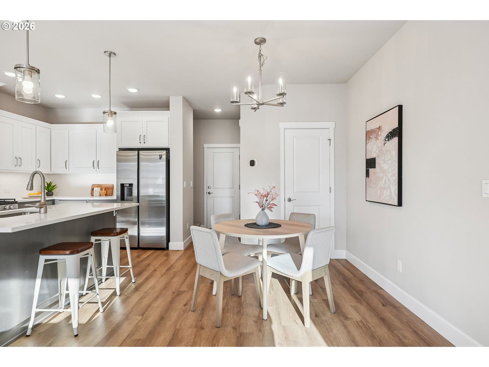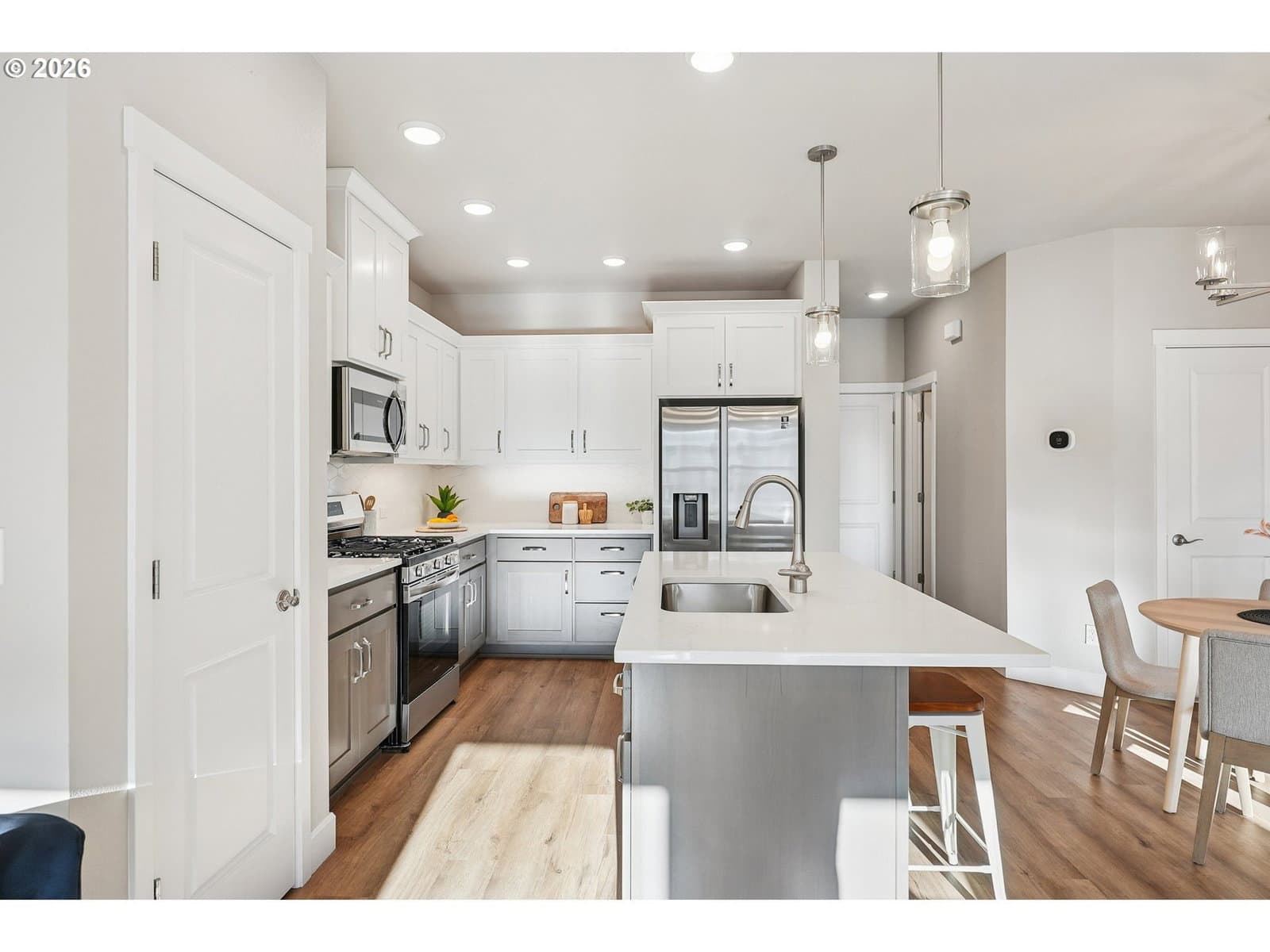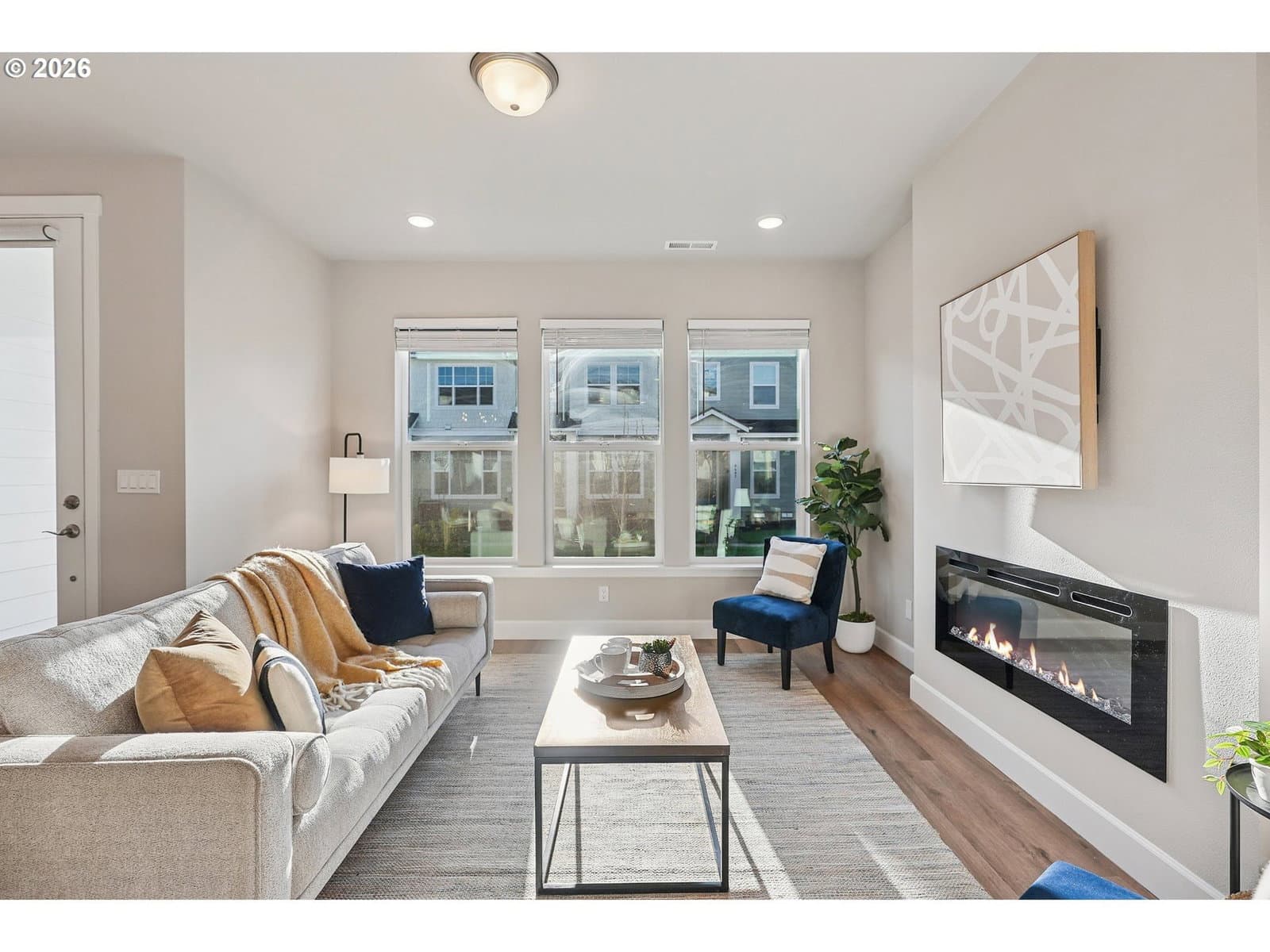 Why wait for new construction when you can have your like-new dream home now? Why pay more for builder basic when you can have a thoroughly updated model for less? This is the one-year old Reed’s Crossing townhome for the savvy buyer! A well-appointed Rivergrove floor plan from David Weekley, this one performs and presents like new! The generous sunlight streaming into the first-floor great room casts itself on the luxury vinyl plank floors, high end cabinets, quarts counters, and stainless steel appliances. Upstairs, luxurious wall to wall carpet creates the coziest of atmospheres and a distinct space for quiet bedrooms. A two car garage and two full parking spots in the driveway give above average parking options right at your door. No detail has been overlooked! Don’t miss the built in efficiency features: pre-wiring for solar panels, pre-wiring for EV charging inside the garage, 97% efficient furnace, and hybrid heat-pump water heater! Plus, air conditioning for hot summer days! This really is the right Reed’s Crossing choice! [Home Energy Score = 10. HES Report at https://rpt.greenbuildingregistry.com/hes/OR10229699]