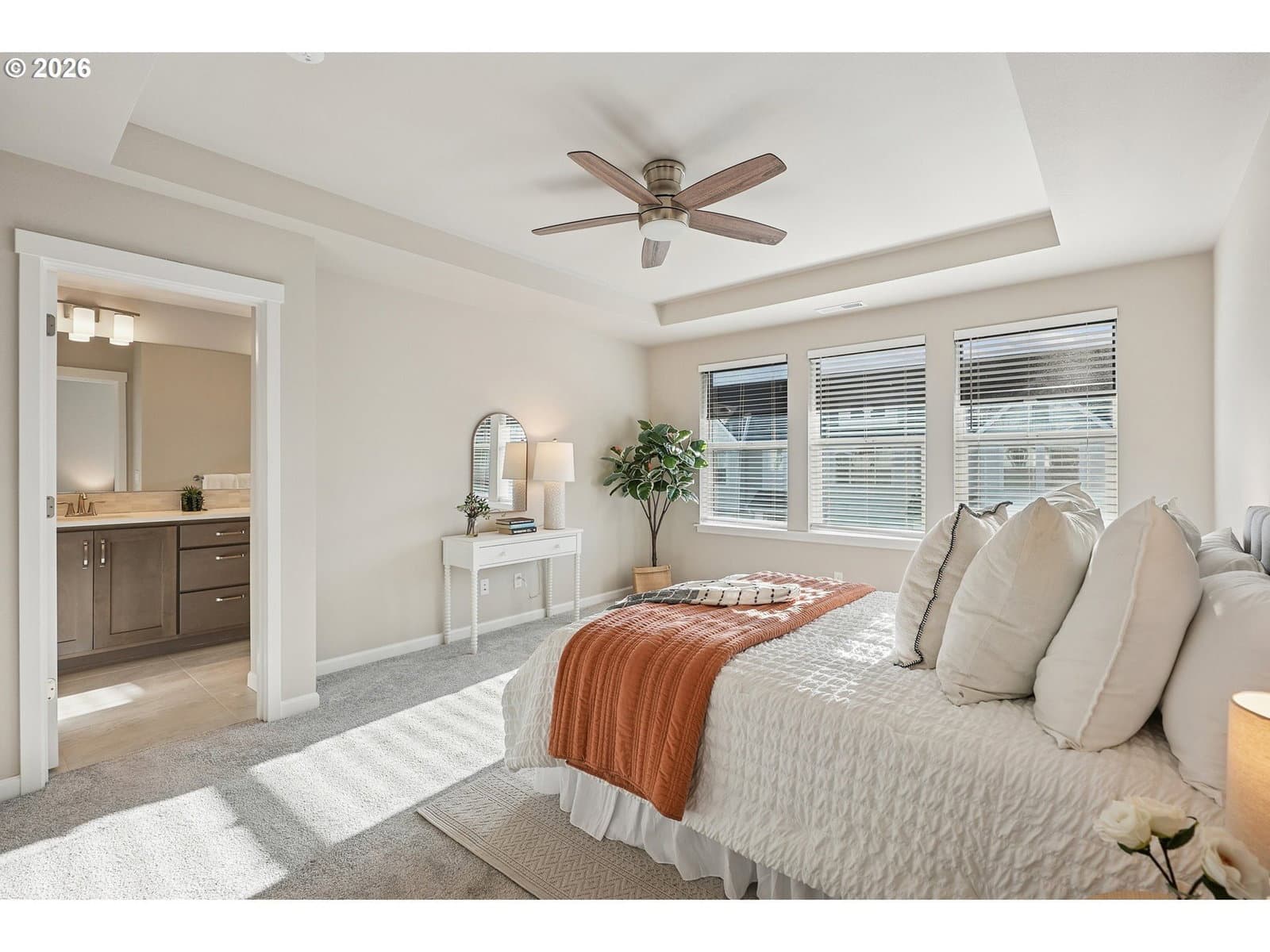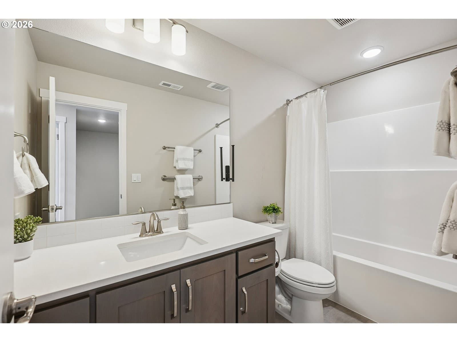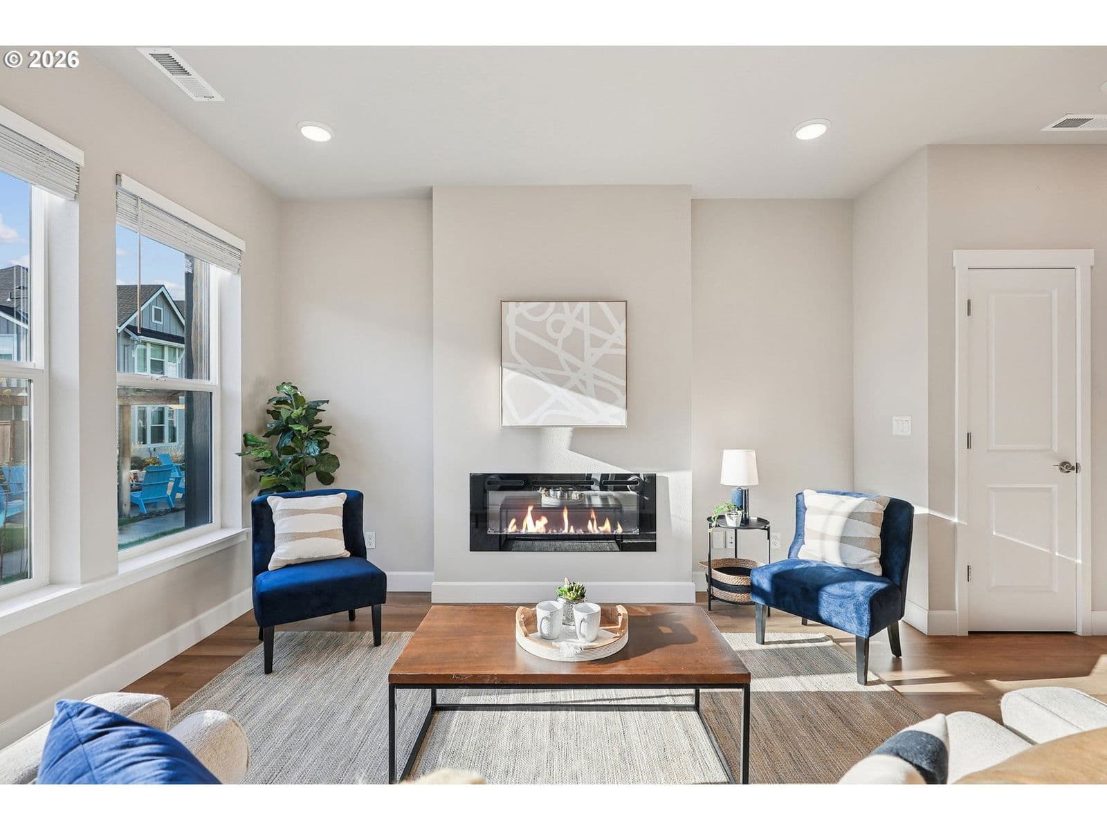 Why wait for new construction when you can have your like-new dream home now? Why pay more for builder basic when you can have a thoroughly updated model for less? This is the one-year old Reed’s Crossing townhome for the savvy buyer! A well-appointed Rivergrove floor plan from David Weekley, this one performs and presents like new! The generous sunlight streaming into the first-floor great room casts itself on the luxury vinyl plank floors, high end cabinets, quarts counters, and stainless steel appliances. Upstairs, luxurious wall to wall carpet creates the coziest of atmospheres and a distinct space for quiet bedrooms. A two car garage and two full parking spots in the driveway give above average parking options right at your door. No detail has been overlooked! Don’t miss the built in efficiency features: pre-wiring for solar panels, pre-wiring for EV charging inside the garage, 97% efficient furnace, and hybrid heat-pump water heater! Plus, air conditioning for hot summer days! This really is the right Reed’s Crossing choice! [Home Energy Score = 10. HES Report at https://rpt.greenbuildingregistry.com/hes/OR10229699]