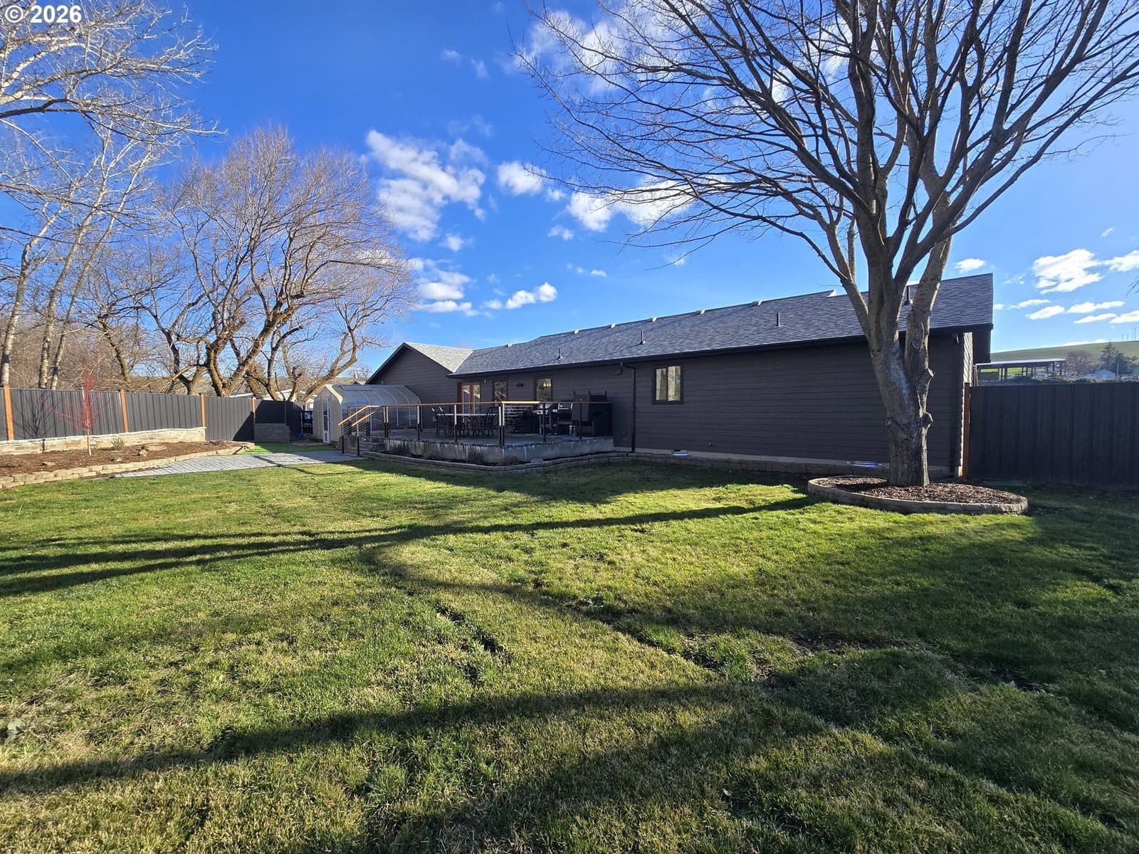 Creekside Luxury in the Heart of Dufur. Experience the pinnacle of small-town living in this exquisitely remodeled sanctuary, where modern sophistication meets the tranquil sounds of Fifteen Mile Creek. Located in the highly desirable community of Dufur, Oregon, this home has been transformed with meticulous attention to detail and high-end design—nothing has been left untouched. Refined Interior Living, The heart of the home features a bright, open floor plan designed for seamless flow and effortless entertaining. A true Chef’s Kitchen: Anchored by a massive island with ample seating, perfect for morning coffee or evening gatherings. A charming swinging door leads to a dedicated pantry and laundry suite. Designer Finishes throughout the home creating a crisp, modern aesthetic. For work or hobby, the home office looks into the private backyard. A breathtaking primary suite offers the luxury of both a walk-in closet and a secondary closet for maximum storage. The Spa-Like primary bathroom indulges in a custom tile shower with a sleek glass door along with dual sinks reflecting a true "resort-at-home" feel. An Outdoor Oasis, situated on the water’s edge, the exterior is a hobbyist’s dream and an entertainer’s paradise. Host summer BBQs on the expansive patio and deck overlooking the creek. A large fenced backyard provides safety and seclusion for pets and play. The property boasts a greenhouse for the gardener, plus a shop and garage for projects and storage. Peace of mind is built-in with a propane-powered generator fully wired into the home, ensuring you’re never without power. Enjoy the convenience of being within walking distance to the local community pool and park, all while being part of a community served by a highly-regarded K-12 school. This isn't just a house; it’s a turnkey lifestyle waiting for you to move in and enjoy.