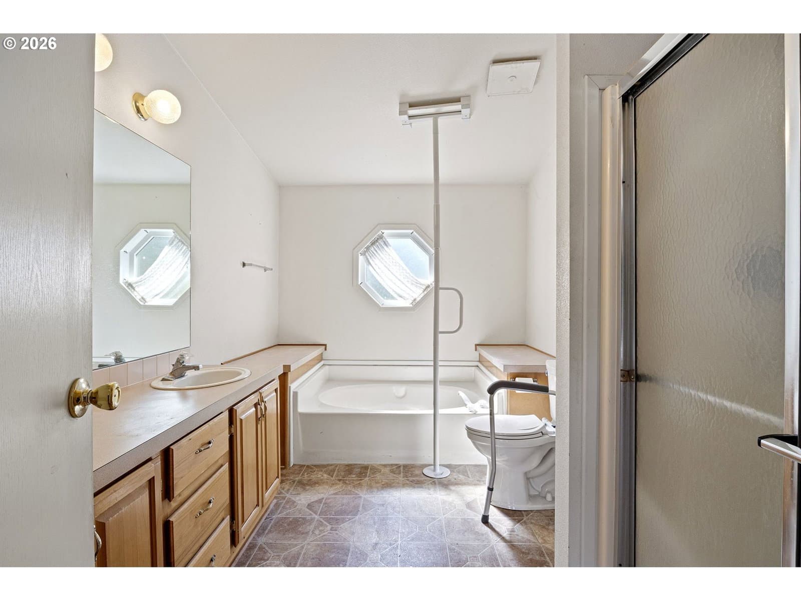 Need some space? Check out this spacious 1782 square foot home on 1/2 acre! Outside is lots of space, fenced dog run, plenty of parking for vehicles/boats/RVs on concrete slab, two car carport with two workshops attached, and deck with a view! Heat pump was replaced in 2025! Inside is more space with both living and family rooms and vaulted ceilings throughout! Primary bedroom has a huge walk-in closet and attached bathroom with double sinks, soaking tub, and walk-in shower!