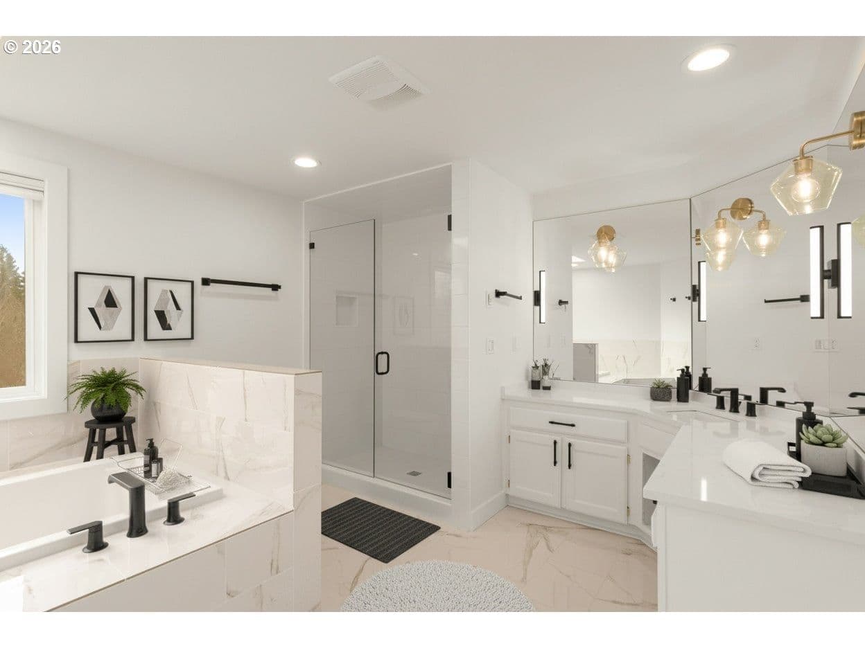 Beautifully updated Bronson Creek retreat. Sought after floorplan with an abundance of natural light. With a remodeled kitchen and primary bathroom this thoughtfully updated and truly move-in ready home blends timeless style with meaningful modern improvements. The recently updated kitchen is a standout, featuring quartz countertops, modern finishes, stainless steel appliances and a layout designed for both entertaining and everyday living. Upstairs, the spacious primary suite offers a peaceful retreat, complete with an updated spa like bathroom showcasing quartz countertops, jetted tub and stylish finishes. Three additional bedrooms provide flexibility for guests, home office space, or hobbies. Major system upgrades add long-term confidence, including a newer furnace and air conditioning system installed in 2023. The architectural composition 50-year roof is approximately 10 years old. In 2023, crawl space improvements included a vapor barrier replacement and ventilation upgrades for enhanced efficiency and durability. Step outside to enjoy the brand-new rear deck completed in 2025—perfect for summer evenings, entertaining, or simply relaxing in your private outdoor oasis that overlooks Bronson Creek and all the wildlife. Located near miles of walking trails & parks. With quality updates throughout and the big-ticket items already addressed, this home delivers comfort, functionality, and lasting value.