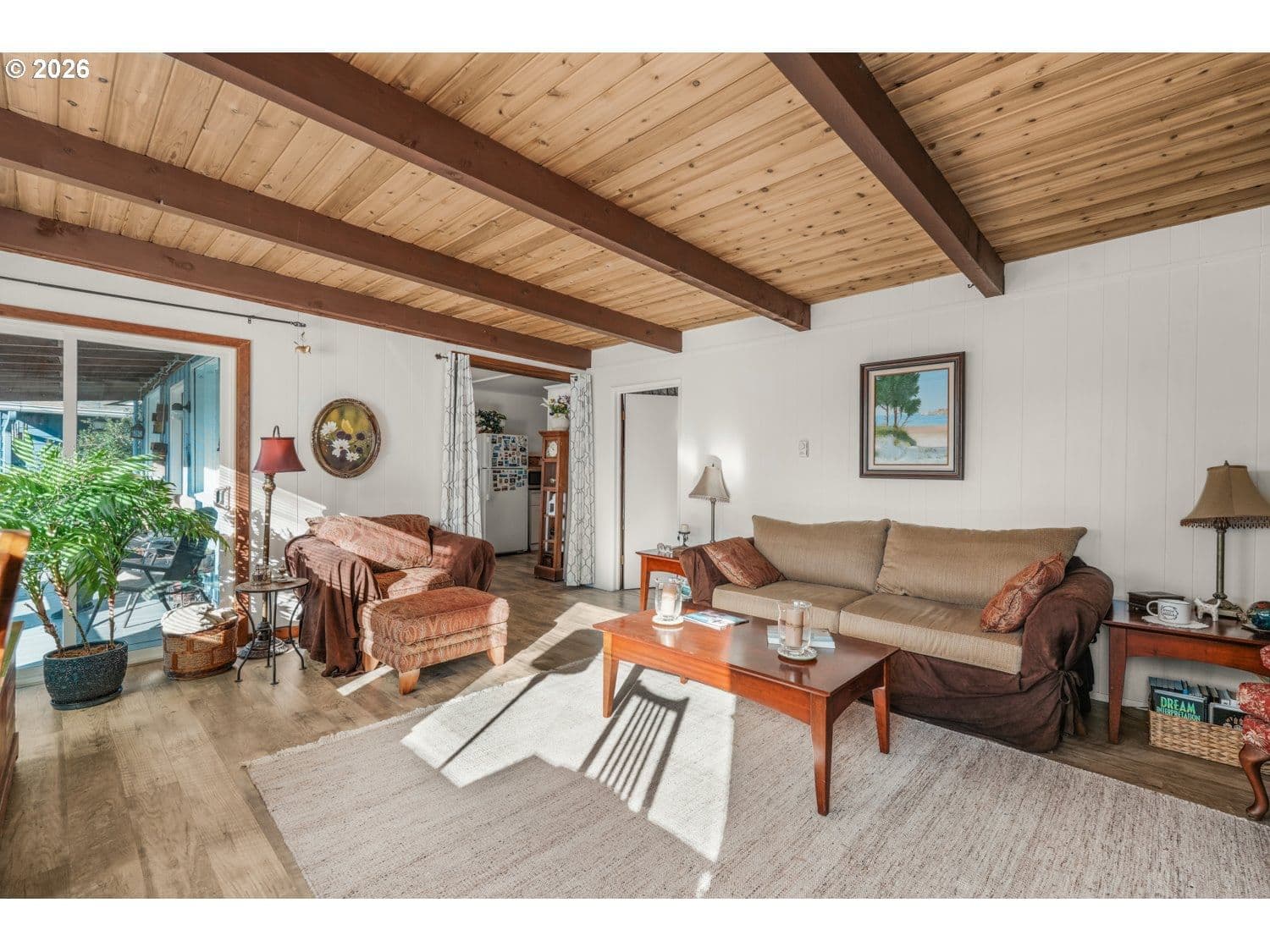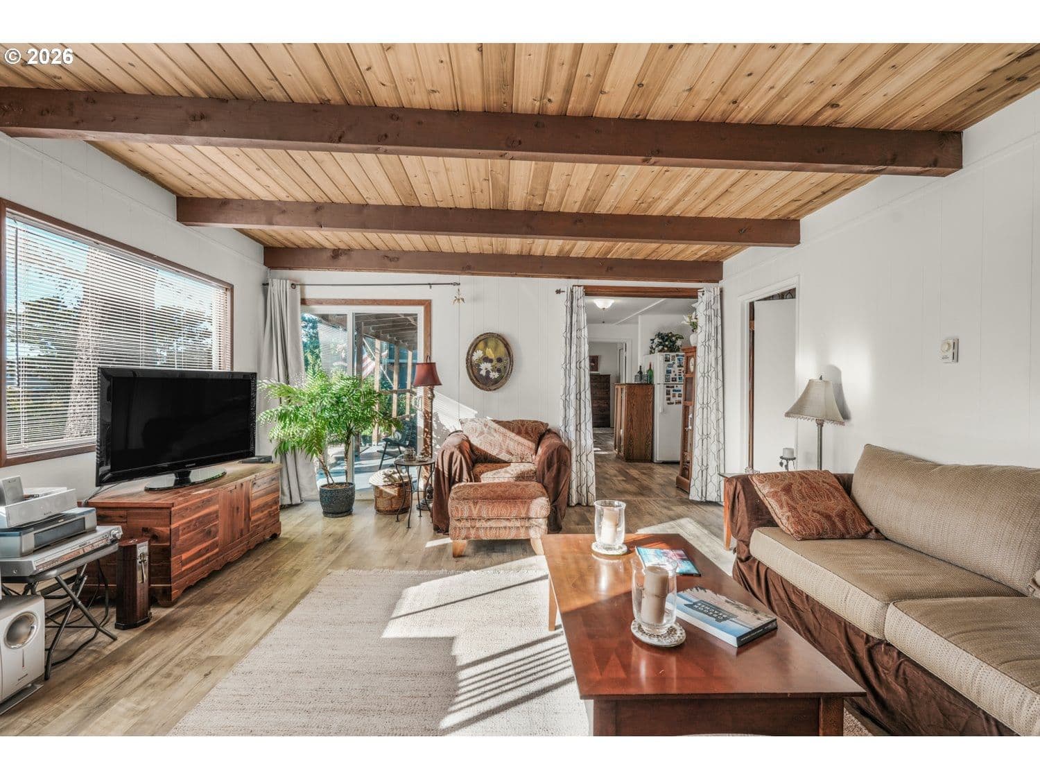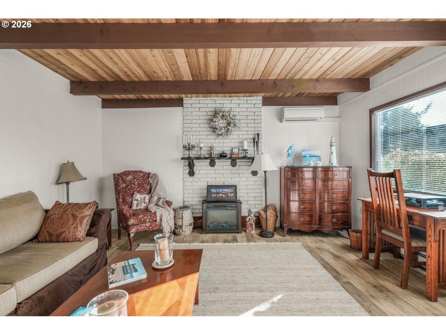GREAT LOCATION! West of Hwy 101, only a few blocks from the ocean, in the heart of Lincoln City. This inviting 2-bedroom, 1-bath home blends character and function with thoughtful updates throughout. The living room is filled with natural light and showcases gorgeous, beamed ceilings and new laminate flooring, creating a warm, open feel. The kitchen and dining area continue the updated laminate flooring and fresh interior paint, and include a freestanding range, built-in dishwasher, and pantry for everyday convenience. The primary bedroom offers double closets and laminate flooring, while the second bedroom is non-conforming—ideal as a home office, guest space, or flex room. A utility and laundry room off the bathroom adds practicality and provides direct access to the backyard. Outside, enjoy a large yard with an in-ground fire pit—perfect for coastal evenings and entertaining. Close to beach access, shopping, dining, and all that Lincoln City has to offer, this home is a great opportunity for a full-time residence, second home, or coastal getaway.