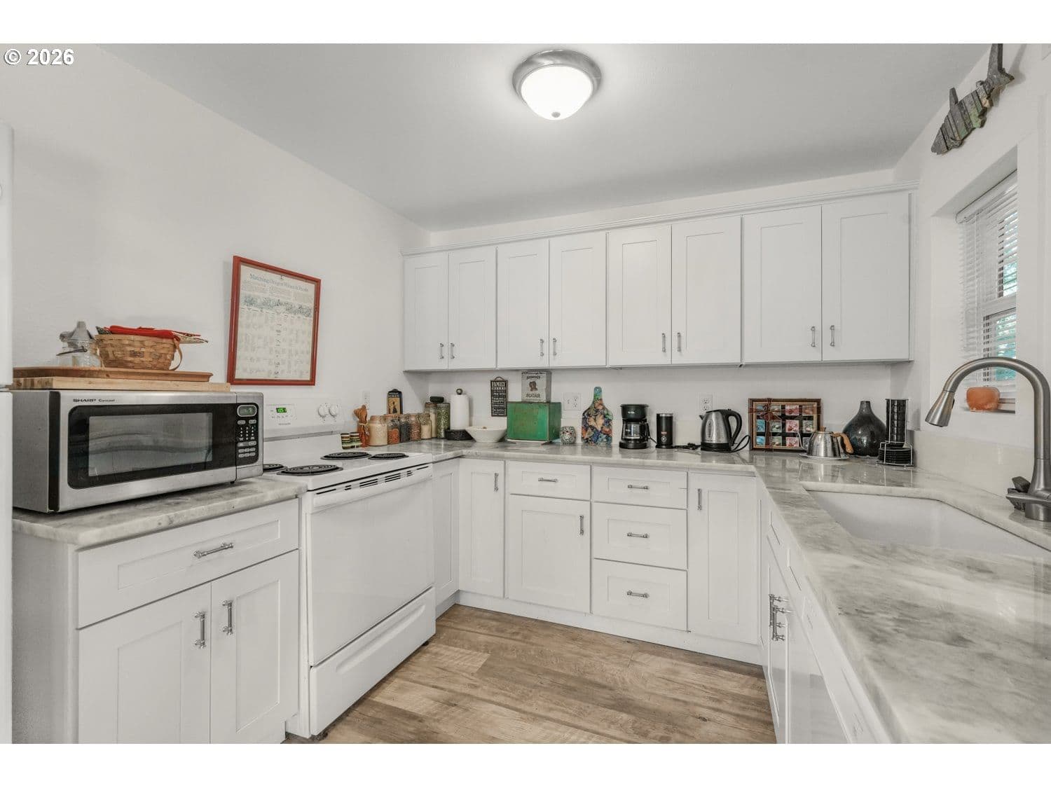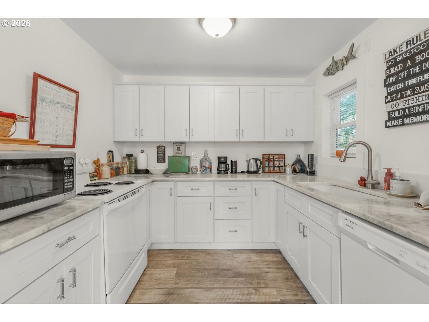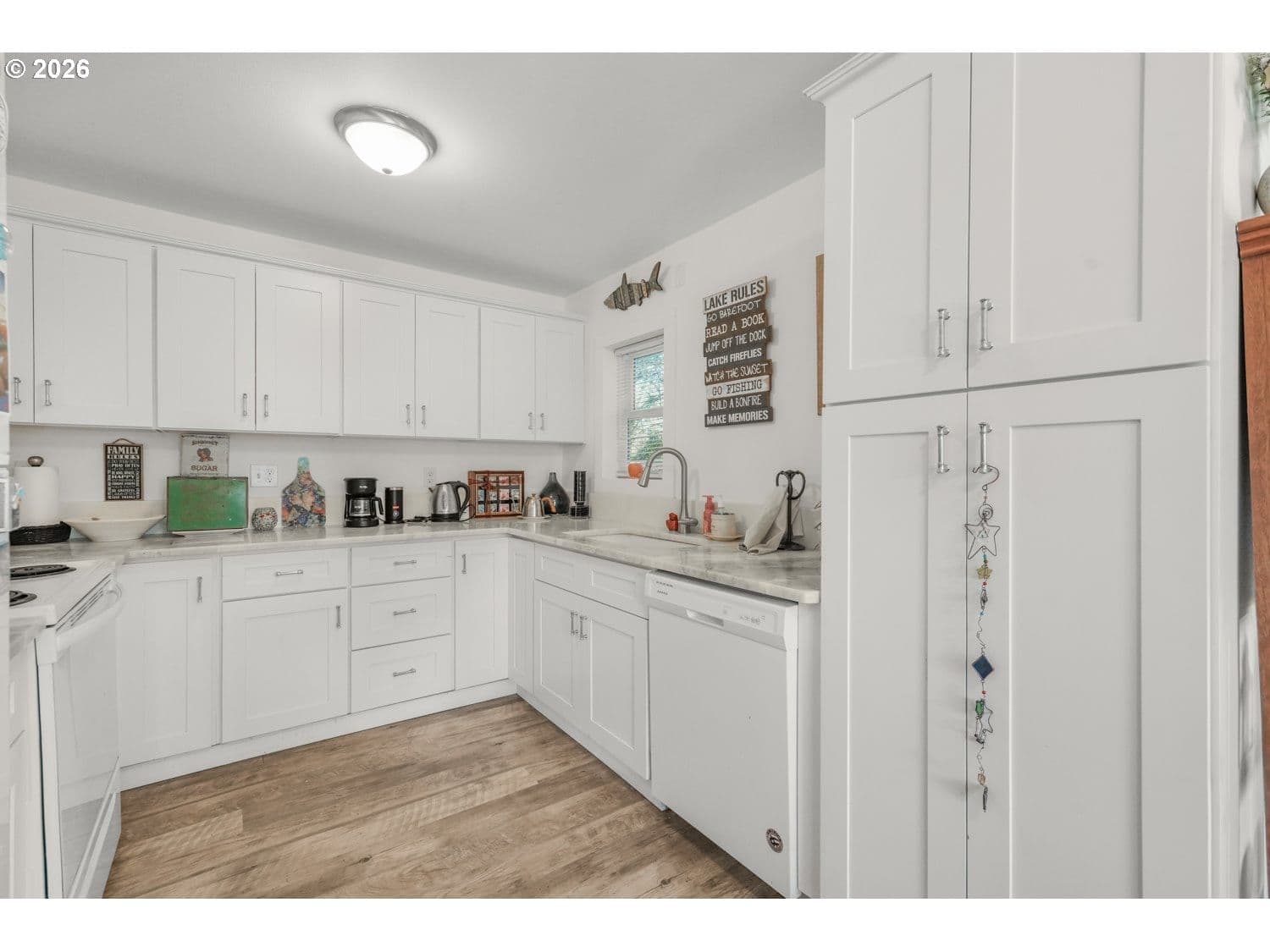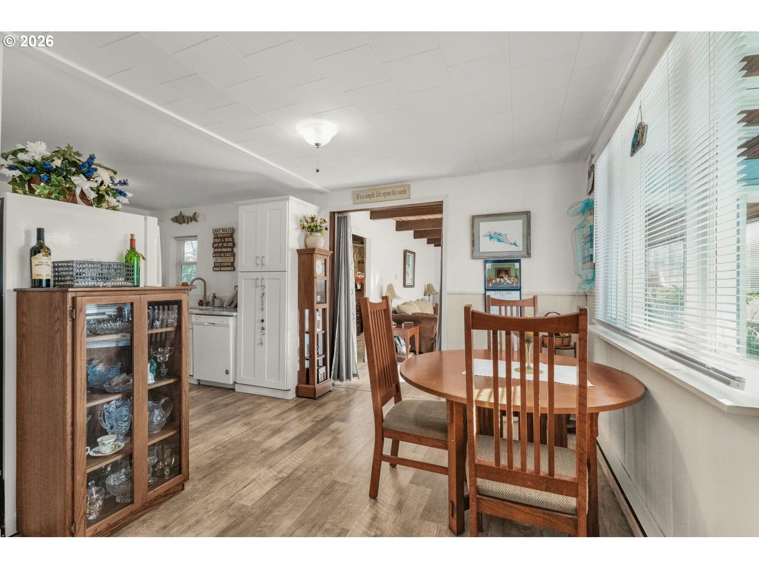 GREAT LOCATION! West of Hwy 101, only a few blocks from the ocean, in the heart of Lincoln City. This inviting 2-bedroom, 1-bath home blends character and function with thoughtful updates throughout. The living room is filled with natural light and showcases gorgeous, beamed ceilings and new laminate flooring, creating a warm, open feel. The kitchen and dining area continue the updated laminate flooring and fresh interior paint, and include a freestanding range, built-in dishwasher, and pantry for everyday convenience. The primary bedroom offers double closets and laminate flooring, while the second bedroom is non-conforming—ideal as a home office, guest space, or flex room. A utility and laundry room off the bathroom adds practicality and provides direct access to the backyard. Outside, enjoy a large yard with an in-ground fire pit—perfect for coastal evenings and entertaining. Close to beach access, shopping, dining, and all that Lincoln City has to offer, this home is a great opportunity for a full-time residence, second home, or coastal getaway.