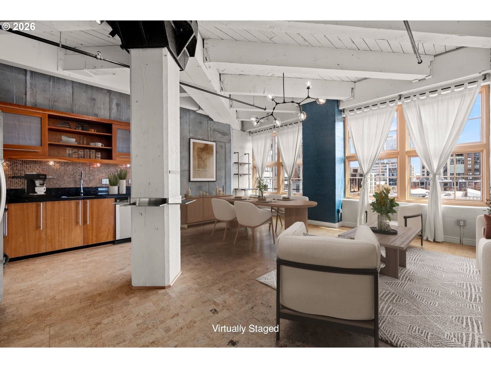 15days on marketExperience the perfect blend of historic character and modern sophistication in this stylish 4th-floor loft at the iconic Marshall Wells building, a National Historic Landmark in Portland’s vibrant Pearl District. Originally designed by renowned architect Daniel Burnham, this east-facing one-bedroom, two-bath unit is full of light with unobstructed city views and mountain views in clear weather. 11-foot ceilings, exposed old-growth fir posts and beams, steel brackets, custom room dividers and cork floors. Bonus space off entry is great for office, guest room or media room. Pet-friendly, secure and quiet. Enjoy access to a peaceful central atrium and a welcoming lobby along with the convenience of a deeded parking space and an adjacent 12' x 9' deeded storage room with 10' ceiling and an exterior window. Located just steps from the streetcar, dining, shopping and all that the Pearl District has to offer! 98 Walk Score, 97 Bike Score!