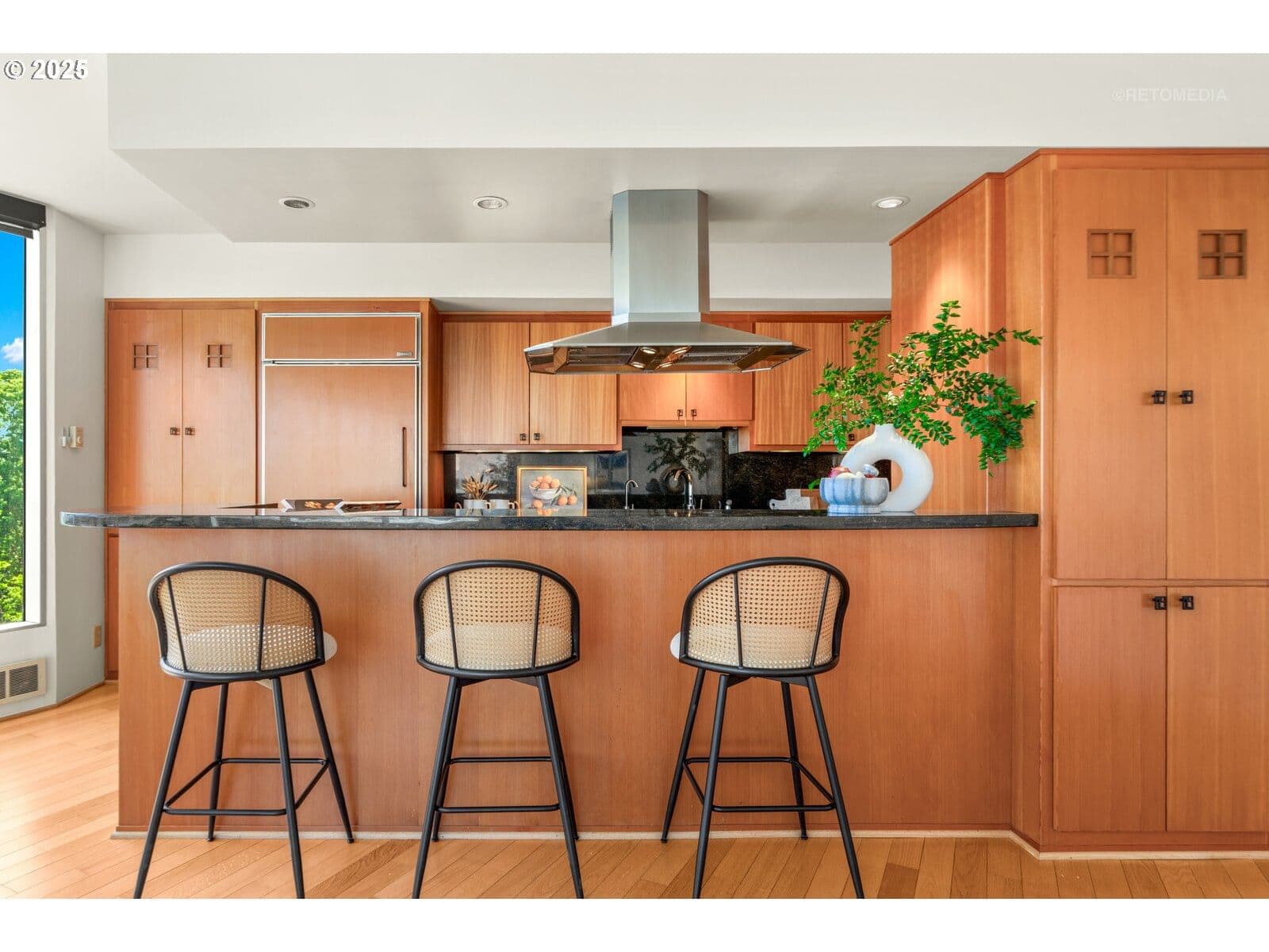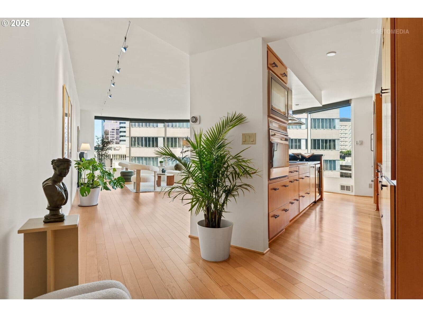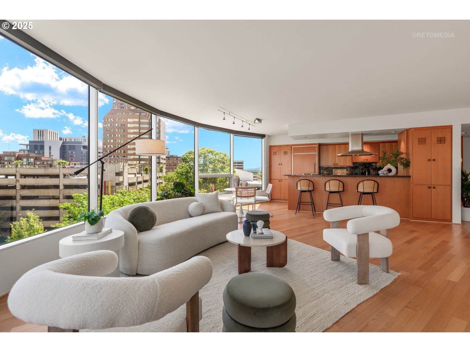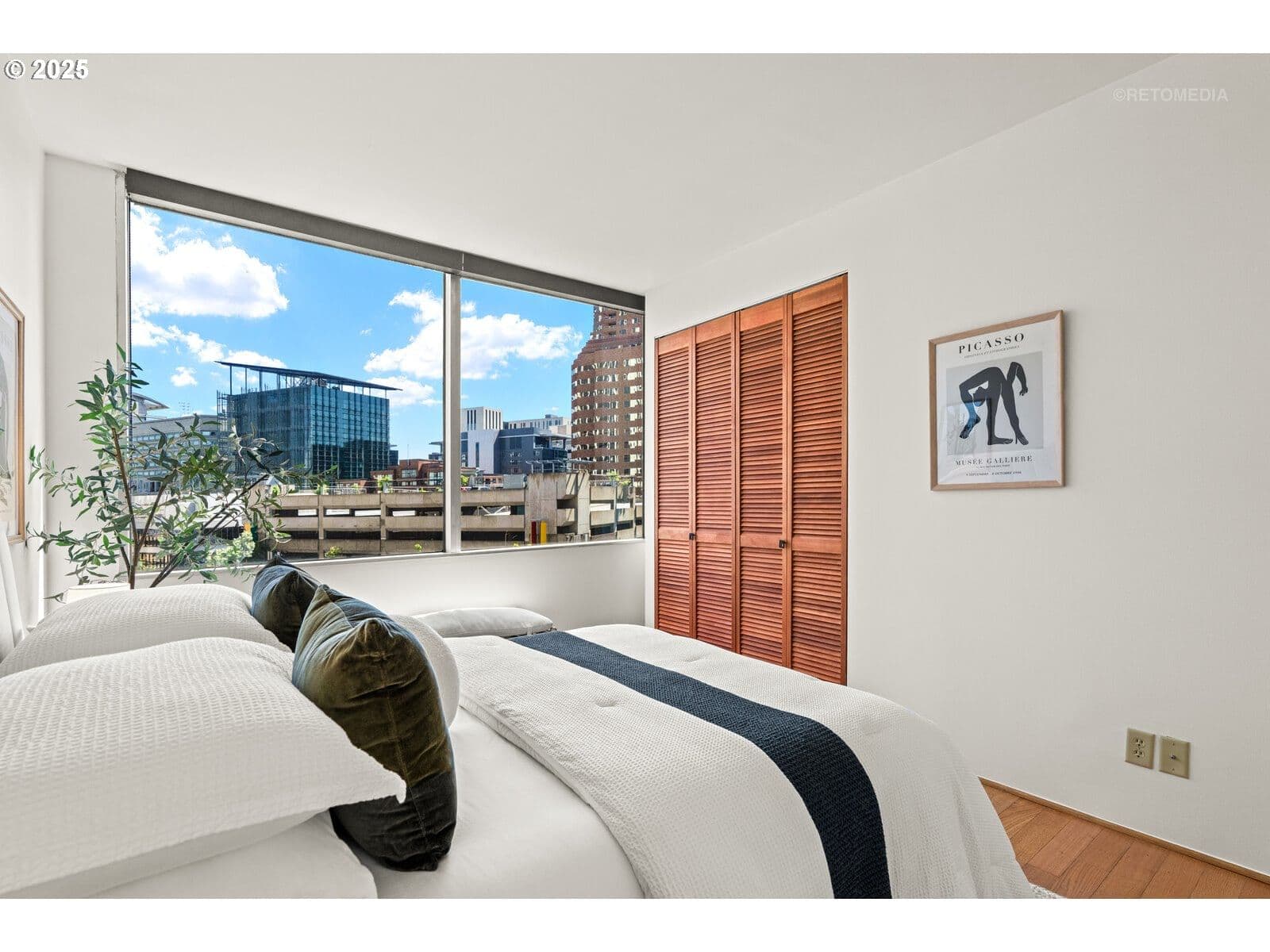 Classic design and style in the iconic Portland Plaza. 1319 square feet of comfortable downtown condo living at its best. View of the beautiful city and tree line, you will love living here. Move-in ready unit offering hardwood flooring thru-out with updated gourmet kitchen with elegant cabinetry. Enjoy the luxurious primary suite with well-appointed bathroom every day. The building sits grand on a full city block with spectacular outdoor space; summer BBQ and lounge around the pool are a must. Fully equipped workout room, 24hr concierge and security, this unit and the community is a perfect combination to enjoy living in the city. Cultural district offers arts and culture along with eateries, parks, shops and much more. Live a simple and convenient life here, it is all yours.
