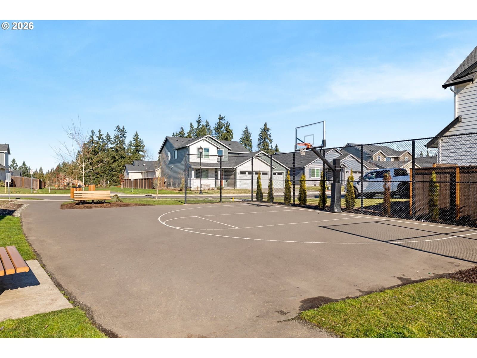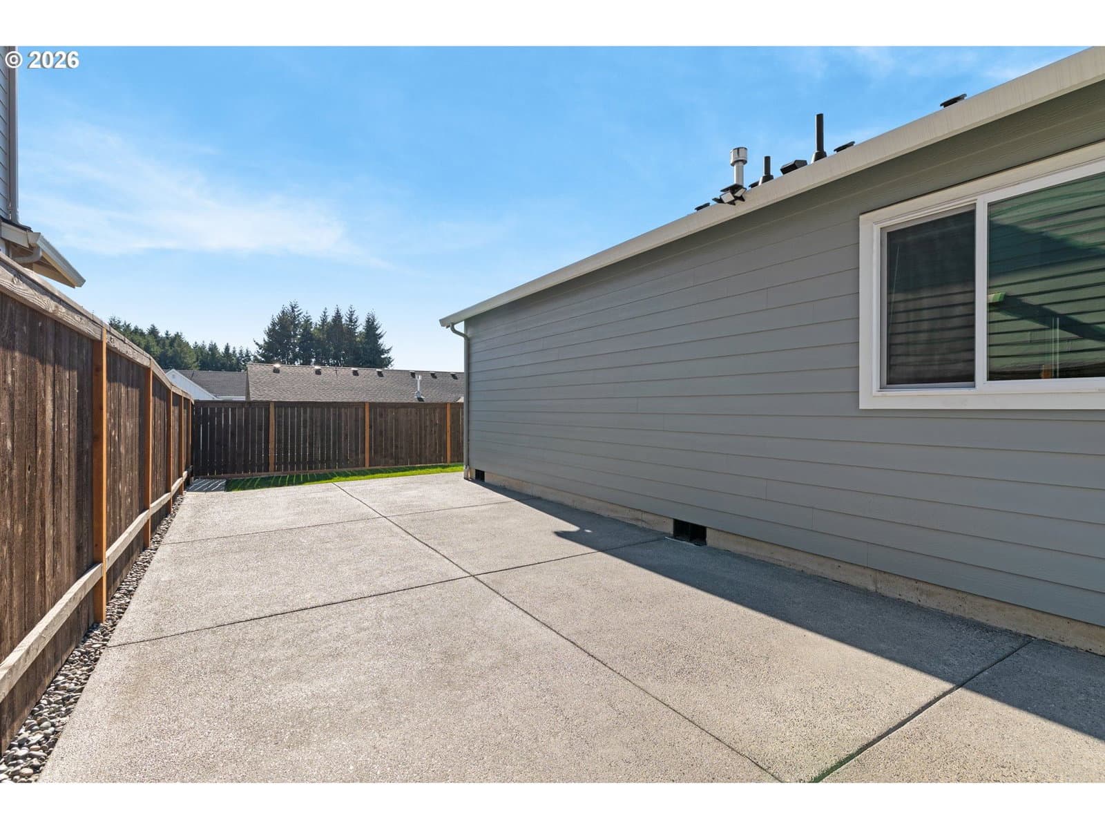 Almost new and built in 2024, this beautifully designed single-level home offers 4 bedrooms and a 3-car garage in a desirable Ridgefield neighborhood. The spacious great room features a cozy gas fireplace and flows seamlessly into the kitchen and dining area, creating an ideal space for everyday living and entertaining. The kitchen is thoughtfully appointed with quartz countertops, a large island, induction cooktop, stainless steel appliances, and a pantry. The private primary suite boasts a spa-inspired bathroom complete with a soaking tub, walk-in shower, double sinks, and an expansive walk-in closet. Step outside to a fully fenced backyard featuring a covered patio with extended concrete—perfect for relaxing or hosting gatherings. Nestled in a quiet community with walking trails, a park, and basketball court, this home is just minutes from shopping, dining, and convenient freeway access. Modern comfort, style, and location all in one exceptional property.
