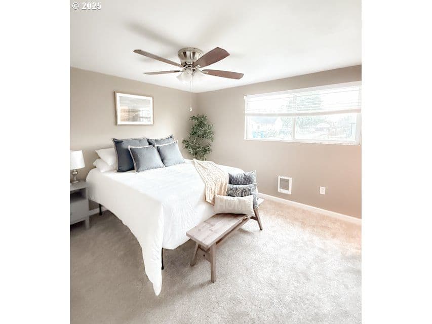 Move-In Ready! Beautifully updated single-level home offers comfort and convenience with a spacious living area featuring laminate flooring and modern recessed lighting. Enjoy brand-new carpet in all bedrooms, each outfitted with ceiling fans for year-round comfort. The primary suite includes a large walk-in closet and bathroom with shower. Additional upgrades include a newer roof, energy-efficient vinyl windows, and an indoor laundry area. Outside, the property features a large fenced yard, detached two car garage and a paved entry ramp, providing easy access for guests or enhanced mobility. Easy to show and ready to sell—don’t miss this opportunity!