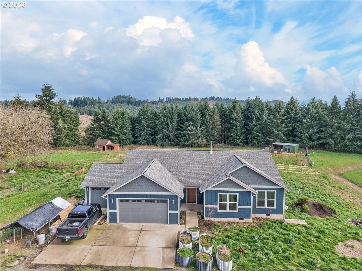 Beautifully built one-level home on 1.74 acres in Castle Rock, offering the perfect blend of comfort, space, and small-farm living. This 4-bedroom, 2-bath home features 2,699 sq. ft., a 3-car garage with charging station, A/C, double water heaters, leathered black pebble granite countertops, and a double-wall catalytic converter woodstove for efficient warmth.Designed for a true lifestyle property, the grounds include a 3,600 sq. ft. commercial automated high tunnel/grow tunnel with double 6 mil poly walls, along with a large chicken coop and established plantings already in place. Current crops include 2,500 garlic plants, 400 raspberries, 55 olive trees, 55 table grape vines, and fruit trees such as persimmon, apple, pear, gooseberry, pomegranate, and elderberry.There is also possible additional dwelling unit potential, offering even more flexibility for future use. Enjoy the opportunity to live, grow, and garden on a beautiful property with room to expand your vision.