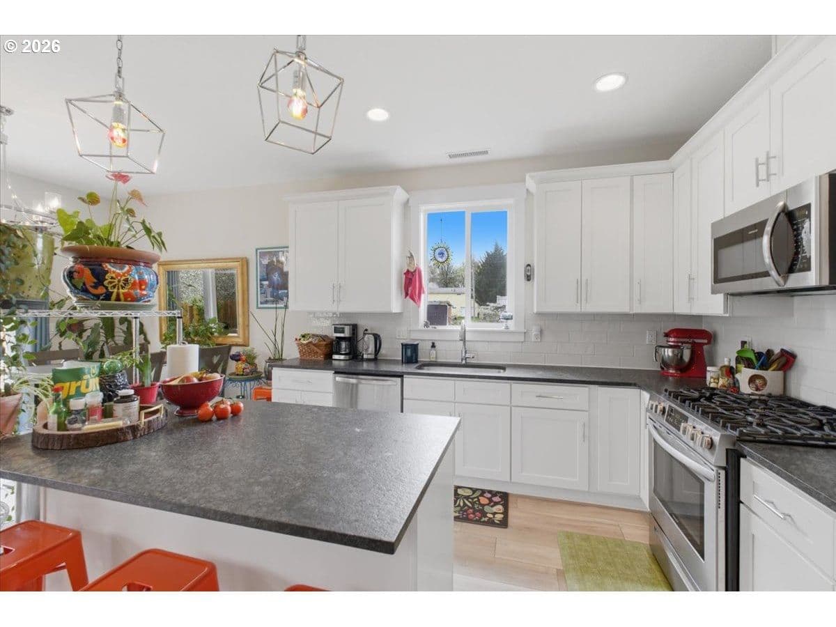19days on marketSingle level home w/ spacious great room floor plan. Includes white kitchen cabinetry, gas range, leathered granite countertops and kitchen island. 9 ft ceilings throughout creates an open feel. Features include RV parking, fenced yard, beautiful perennial garden beds and covered patio for outdoor living this summer. Solar panels are included and are paid off.