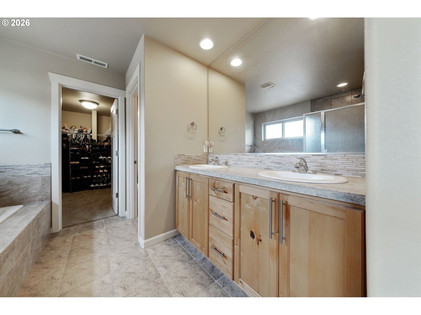 Step into this Enerygy Star move-in-ready home just minutes from downtown Battle Ground!Two story with engineered hardwood floors welcomes you into an open concept living room with a cozy gas fireplace, built-in bookshelves & adjacent dining area perfect for gatherings and entertaining. Kitchen has ample cabinet space, granite countertops and a pantry. There is also a main level bedroom or use as an office? Upstairs, three spacious bedrooms including the primary ensuite with a large walk-in closet, double vanity sinks, garden tub and a step-in shower. Upstairs also has a large flex space for another sitting area/game space/workout area?? Fully fenced back yard with a covered patio. Attached 2 car oversized garage with an oversized driveway for parking. Don't miss out on this home that offers comfort, space and convenience!