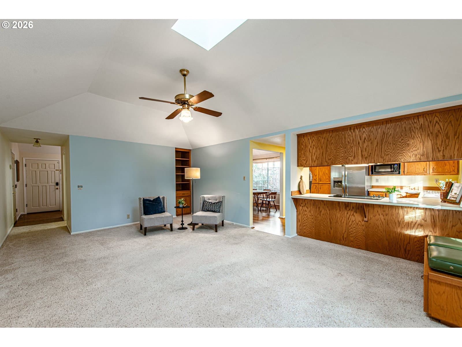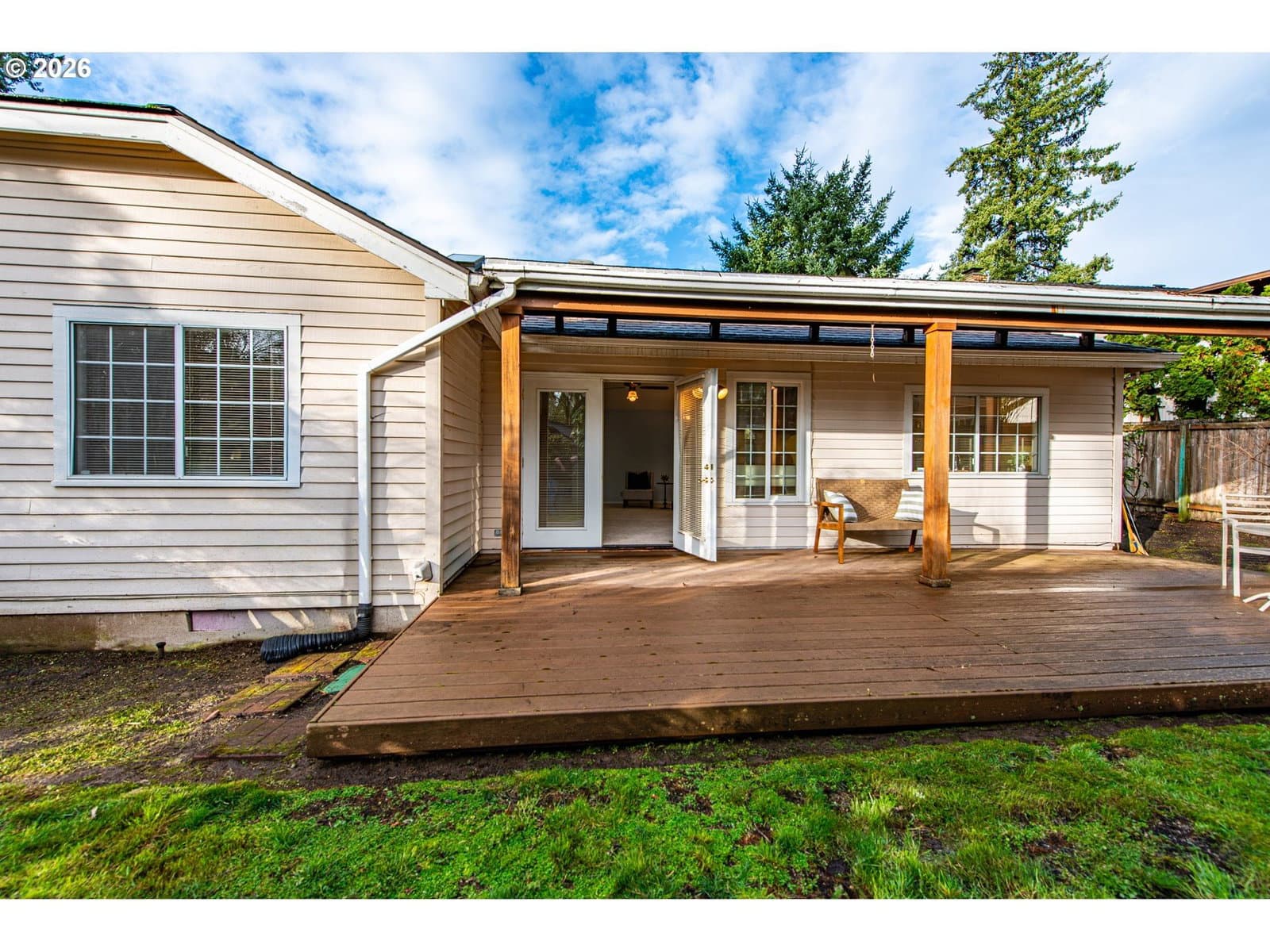 Tucked away on beloved Happy Lane, this exceptional single-level home sits in a quiet dead-end street in the highly sought-after Ferry Street Bridge neighborhood. Light and bright with abundant windows, the open entry welcomes you into inviting living spaces featuring vaulted ceilings, hardwood floor entry, a cozy fireplace, and custom built-ins. The kitchen opens seamlessly to both the living and family rooms, with skylights enhancing the airy feel. Enjoy a spacious dining room, generous laundry with excellent storage, a hall bath with double sinks, and a serene primary suite with vaulted ceilings, a wall of closets, and a private bath. Outside, the fully fenced and beautifully landscaped backyard offers a covered Trex-style deck, tool shed, and an oversized two-car garage with workbench and storage. Heat pump is less than 2 years old. Close to shopping and parks. New roof to be installed prior to close of escrow. OPEN HOUSE Saturday 2/21 from 1pm-3pm