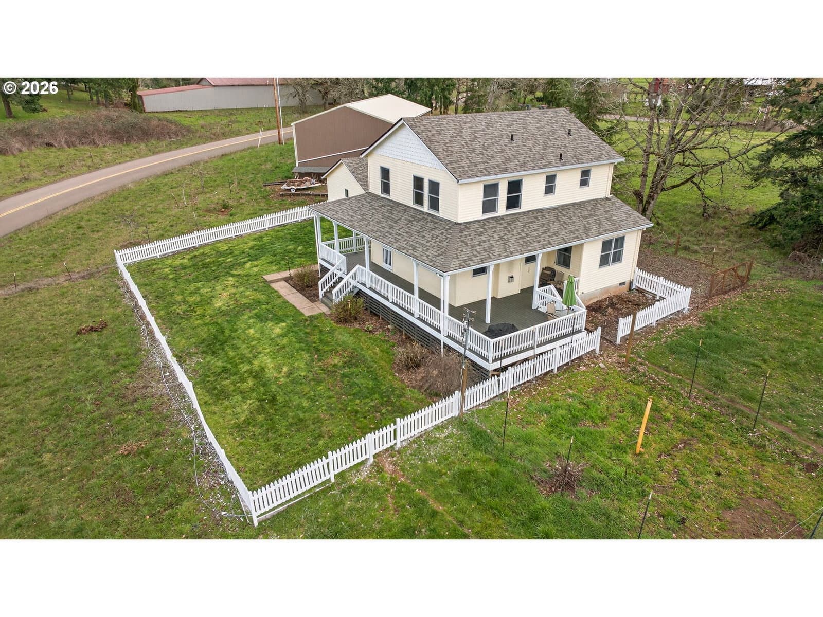This lovely farmhouse is located in one of the most beautiful areas of Yamhill County, surrounded by the classic rolling views the Willamette Valley is known for. Just outside of Amity and convenient to both Salem and McMinnville, the home enjoys Coast Range vistas from both the wrap-around porch and the interior.The comfortable floor plan offers all bedrooms upstairs, with wood floors and fresh interior paint throughout. The property includes a large pole barn with a cement floor and plenty of parking - perfect for projects, hobbies, or storage, along with a detached garage for additional space. A long driveway provides easy off-road access and privacy. Take in the peaceful setting, beautiful views, and everything that makes this special part of Yamhill County so appealing - all with a move-in ready home!