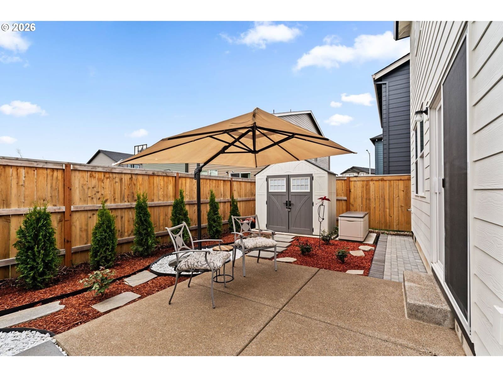 Newly built 2024 home with all the upgrades! This is the Hawthorne floor plan in the sought-after Marcola Meadows community-offering 4 bedrooms, 2.5 bathrooms, and over 2,000 sq ft of thoughtfully designed living space. This modern two-story home features an open-concept layout perfect for everyday living and entertaining, with a stylish kitchen showcasing quartz countertops, stainless steel gas appliances, a large island, and an oversized walk-in pantry. Upstairs, the spacious primary suite offers a private retreat with dual vanities, a walk-in shower, and a generous walk-in closet. Additional highlights include a cozy fireplace, upstairs laundry for convenience, and quality finishes throughout. Ideally located near shopping, dining, schools, and outdoor recreation-including easy access to the McKenzie River and local bike paths, this home blends comfort, style, and location in one exceptional package.