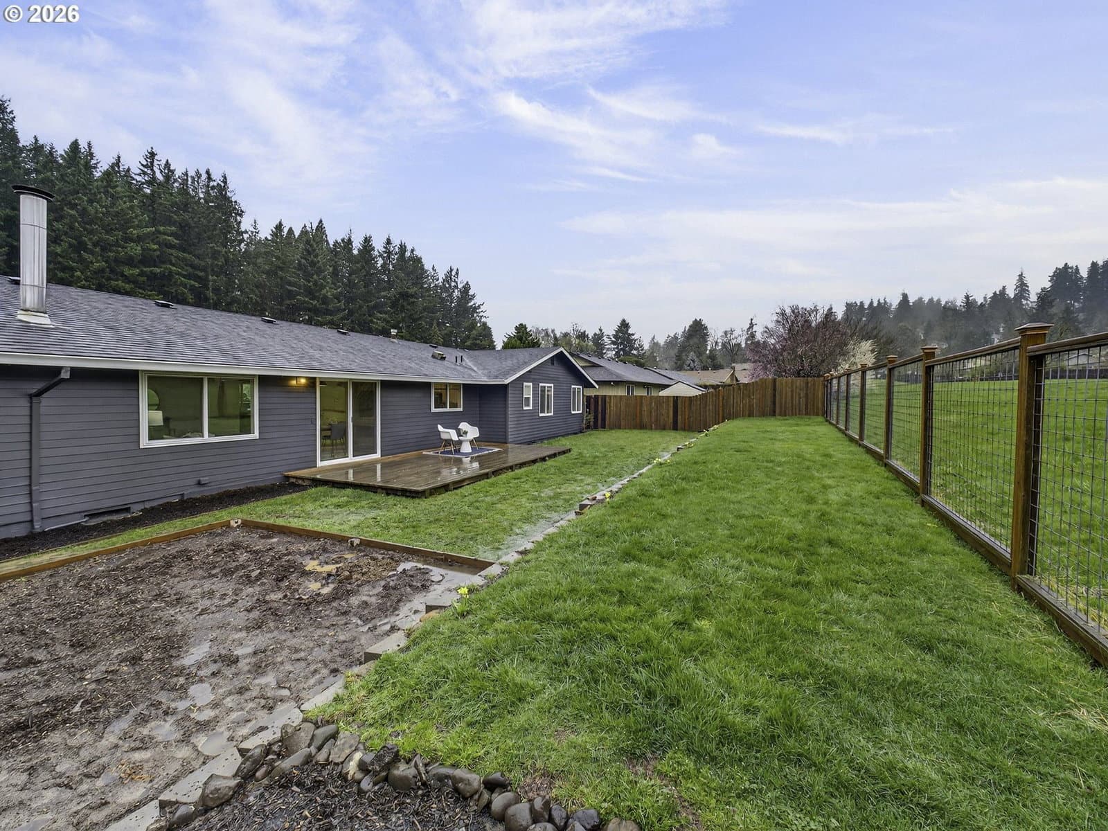 Charming, move-in ready, single-level ranch in desirable Happy Valley, offered at a rare price point for the area. Conveniently located near parks, shopping, dining, and everyday amenities, this home offers the lifestyle many Portland-area buyers are looking for. Fresh interior and exterior paint give the home a bright, updated feel, while the comfortable layout makes single-level living easy and practical, perfect for first-time buyers or those ready to step away from stairs and enjoy the simplicity of one-floor living.The backyard provides plenty of space to imagine possibilities, along with a garden ready for planting. A beautiful deck overlooks peaceful green space, creating a perfect setting for morning coffee or relaxed evenings outdoors. Well-maintained landscaping and a spacious two-car garage with electric car charger add everyday functionality and charm. With its move-in ready condition, convenient location and rare price point for Happy Valley, this home is an outstanding opportunity to enjoy comfortable living.