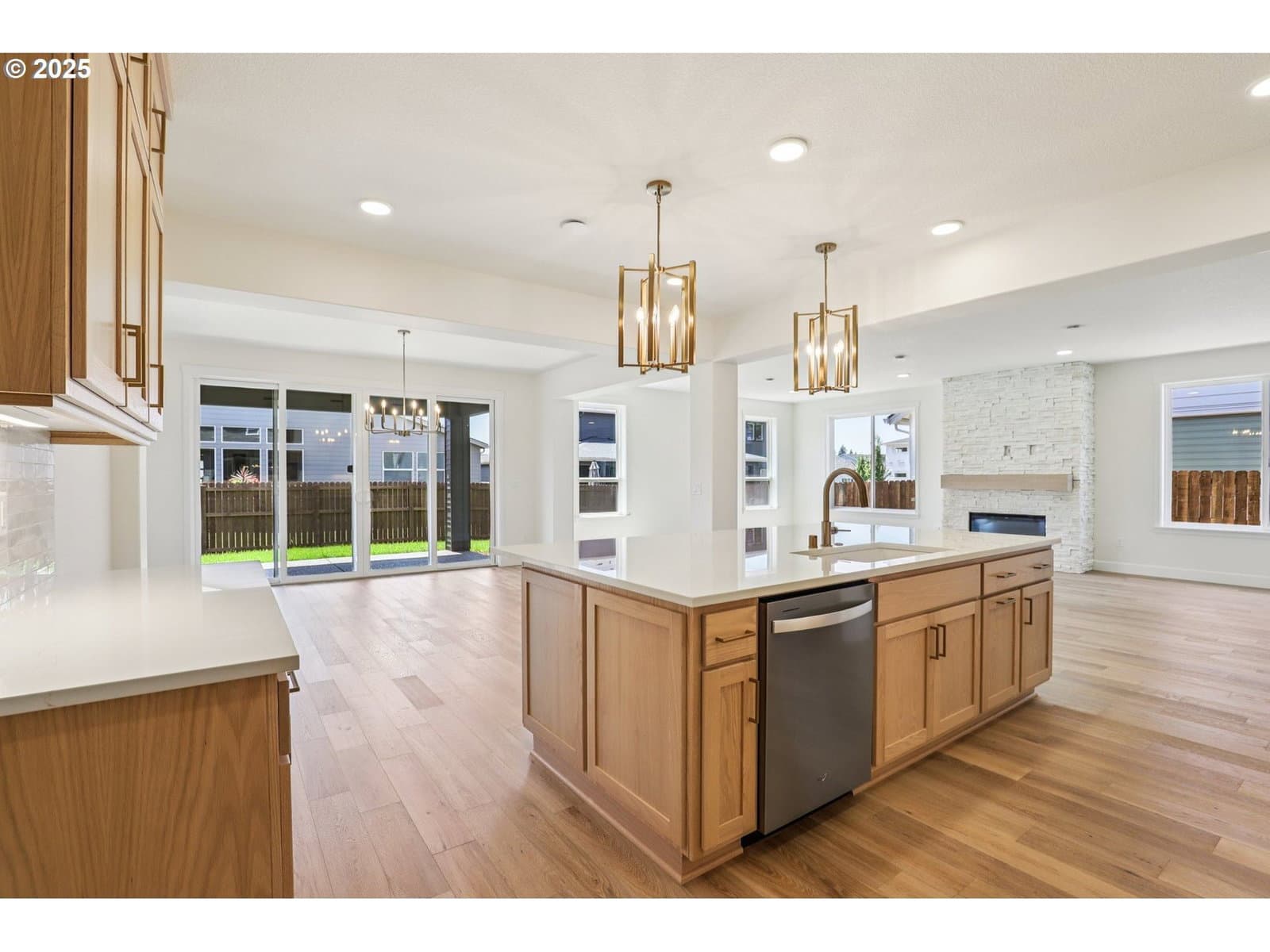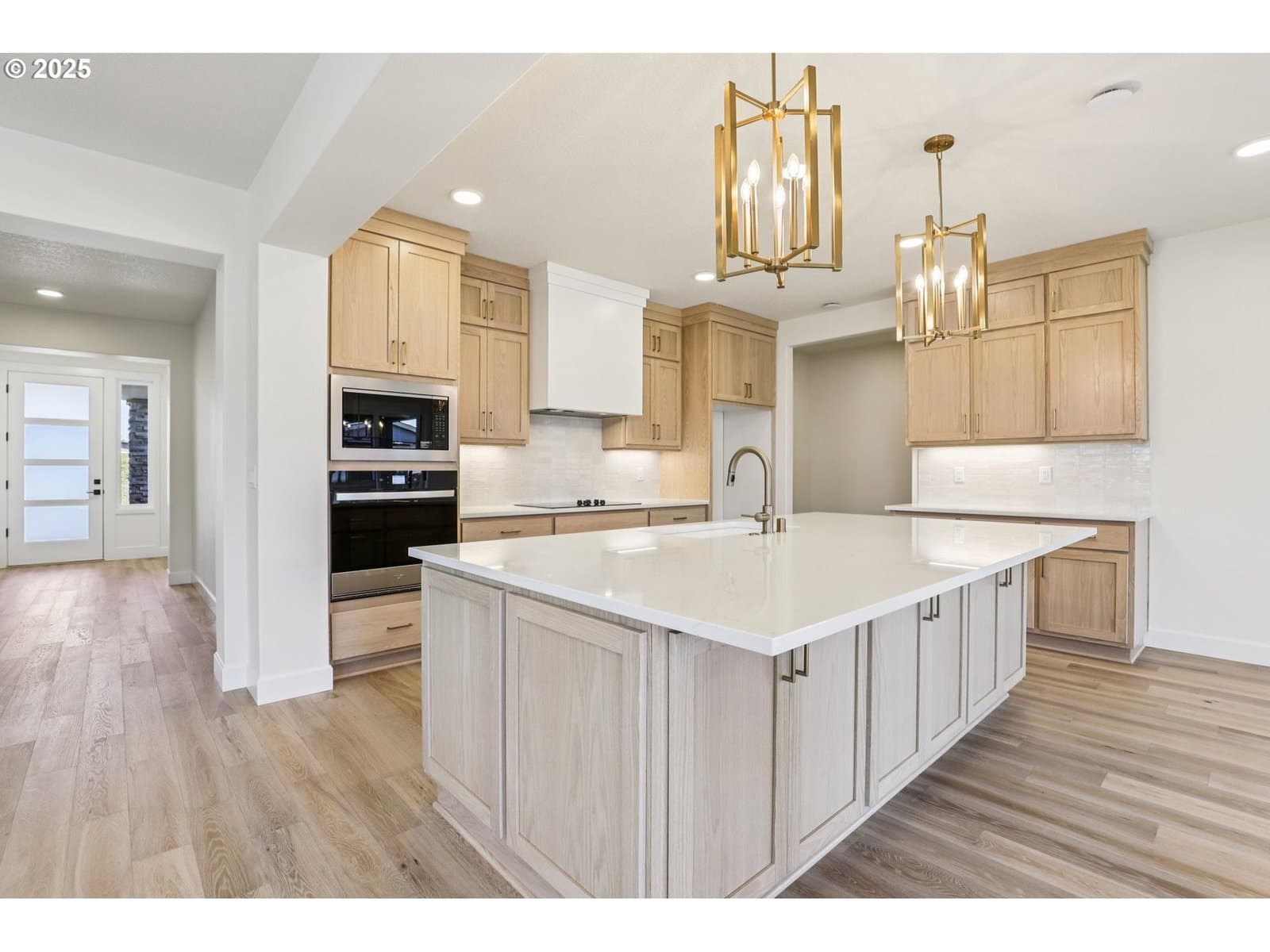 Spacious + Stunning- with a 3-Car & a Tandem Garage! Step into this beautifully designed open-concept home featuring a welcoming den with double doors, a sprawling great room with a gorgeous fireplace, the chef's kitchen is a dream, complete with a built-in wall oven & cooktop, drawers galore for every dish, pot and pan you own. The massive island packed with storage and plenty of room for bar stools, the walk-in pantry is big enough to fit a twin bed—seriously! Host dinner parties for 10+ in the spacious dining area. Enjoy oak hardwoods throughout, sleek quartz countertops, champagne fixtures and a full bathroom on the main floor. The luxurious primary suite offers a spa-like retreat with a dual-headed tiled shower, separate sinks a sit-down vanity, and a fully shelved walk-in closet. Out back, you’ll love the oversized double covered patios with two sliding glass doors—perfect for entertaining, relaxing, or planting your dream garden. This home truly has it all- NextGen Energy Star Certified by a third party, 2 Year Builder Workmanship Warranty & a 2-10 Home Buyer Warranty, come see it for yourself. *Use of preferred lenders can trigger maximum incentives*