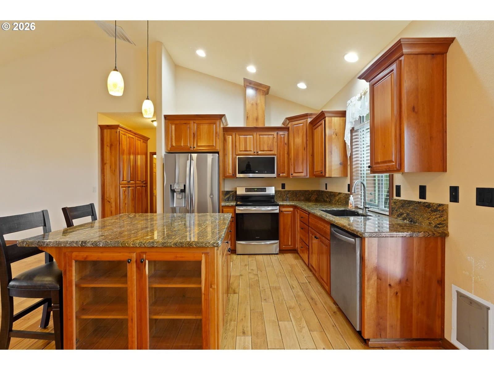 Welcome to this meticulously crafted 2010 custom home situated on the last lot of the street and showcases quality craftsmanship and thoughtful upgrades throughout.The heart of the home features a beautiful kitchen equipped with premium solid cabinetry, convenient pull-out shelving, and a convection oven for the culinary enthusiast. Beautiful hardwood floors flow seamlessly through the main living areas, while the bedrooms offer the comfort of new carpeting.Throughout the home, you'll appreciate the attention to detail with solid doors and closet doors that speak to the quality construction. The property sits on a fully fenced lot with an automated sprinkler system for easy maintenance.Outdoor living is enhanced by raised garden beds perfect for the home gardener, plus an RV pad complete with 30-amp electrical hookups and waste disposal connections—ideal for extended family visits or your own adventures.The peaceful location provides added privacy and reduced traffic while maintaining convenient access to neighborhood amenities.This home combines modern conveniences with quality finishes, creating a move-in ready opportunity for discerning buyers.