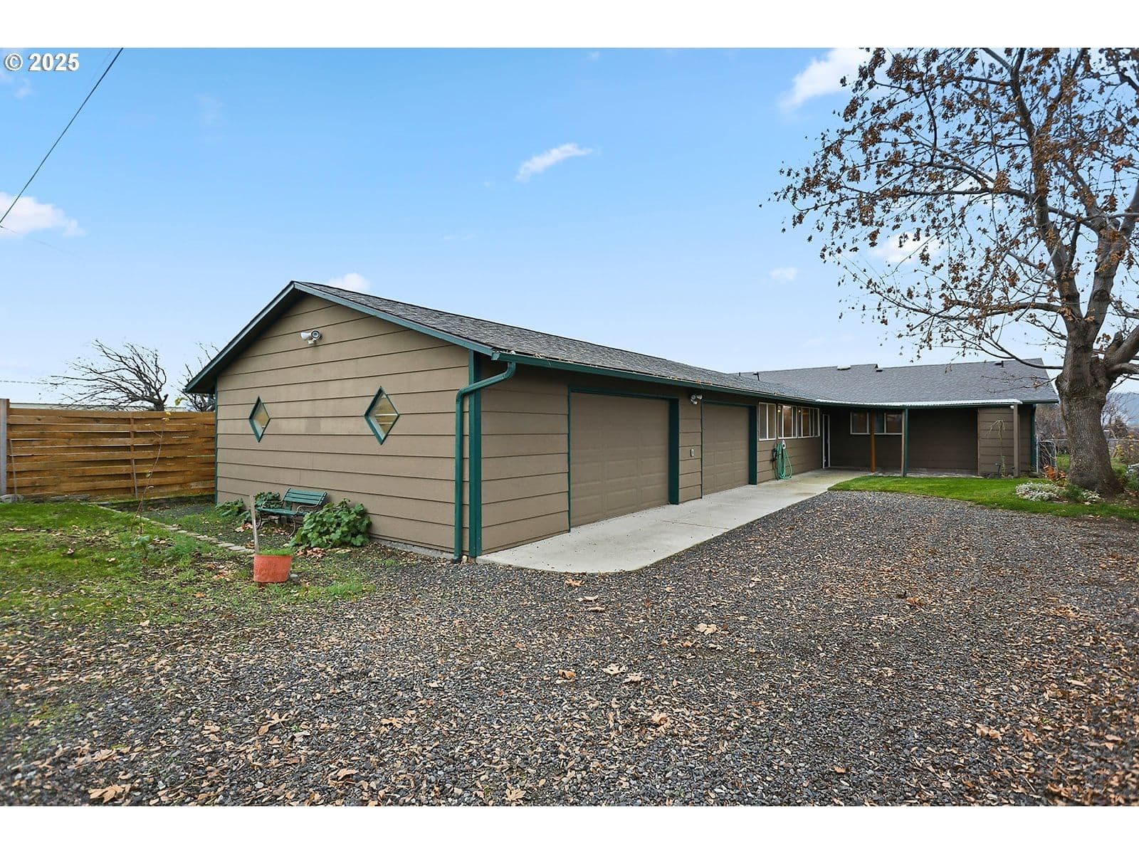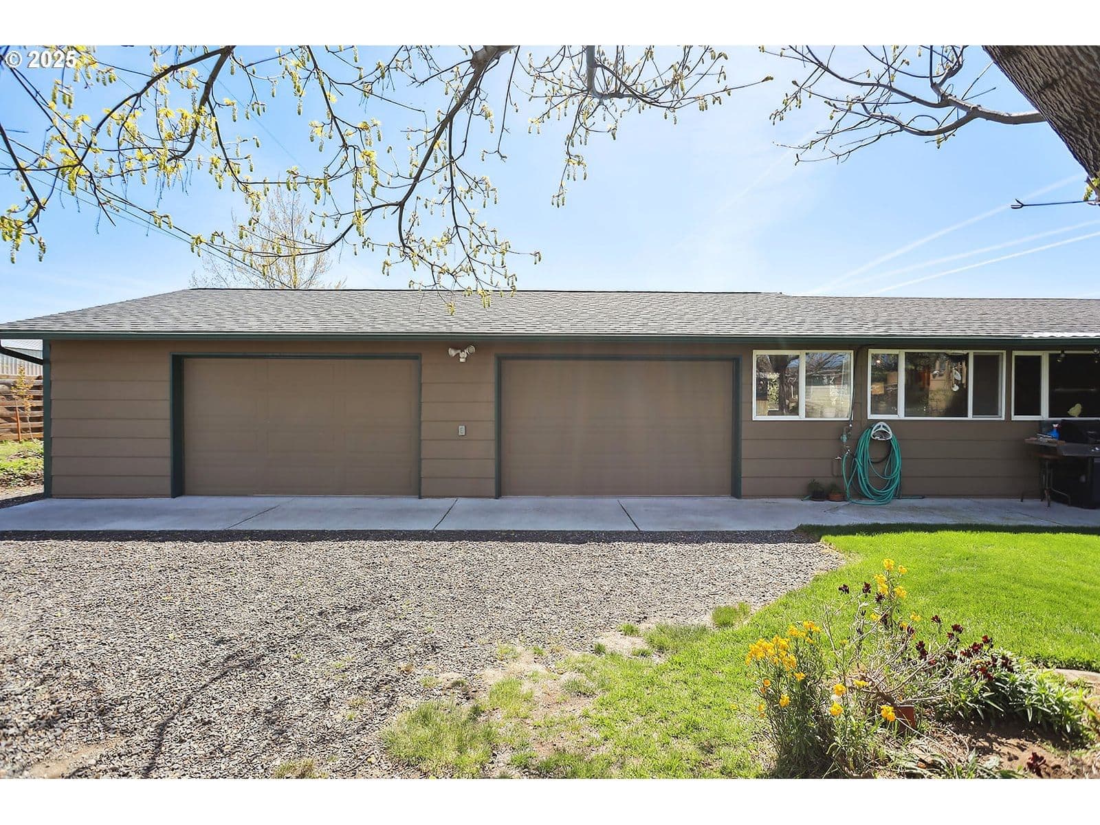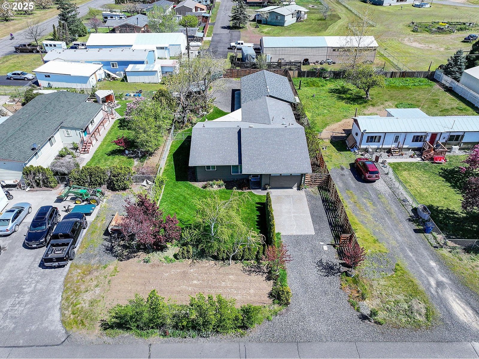 Charming Single-Level Home with Bonus Space & Large Shop — Fantastic Neighborhood & Mountain Views!! Welcome to this well-kept 3-bedroom, 1-bath single-level home featuring an attached one-car garage and an exceptional 24' x 40' two-car garage/shop—perfect for hobbyists, storage, or workspace needs. A spacious bonus living area connects the home to the shop, offering excellent flexibility for entertainment, office use, or multi-purpose living. The property enjoys dual access, with primary entry from D Street to the west and secondary access from Muriel Drive to the east—ideal for maneuvering vehicles, trailers, or accessing the shop without disturbing the main home. The home is on city water and sewer and also includes a private well dedicated to irrigation, providing efficient watering for landscaping and outdoor use. Located in a highly desirable neighborhood, this home sits directly across from a peaceful 5.5-acre undeveloped county park, providing a natural backdrop and a sense of openness. Enjoy scenic views of Mt. Hood and the rolling Oregon hills right from your property. Well maintained and move-in ready, this home represents a solid value and a great opportunity for buyers seeking space, functionality, and an unbeatable location. Great value. Great buy. A smart, solid purchase.