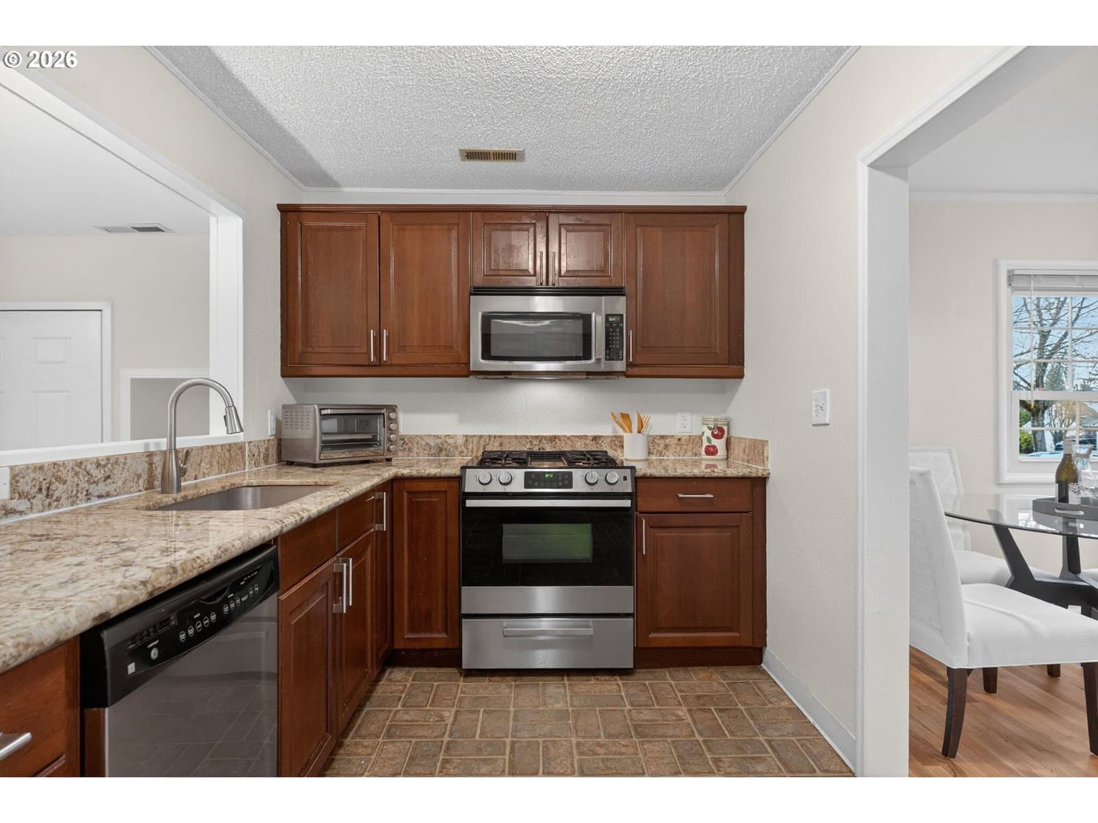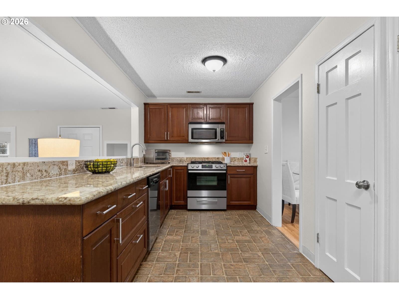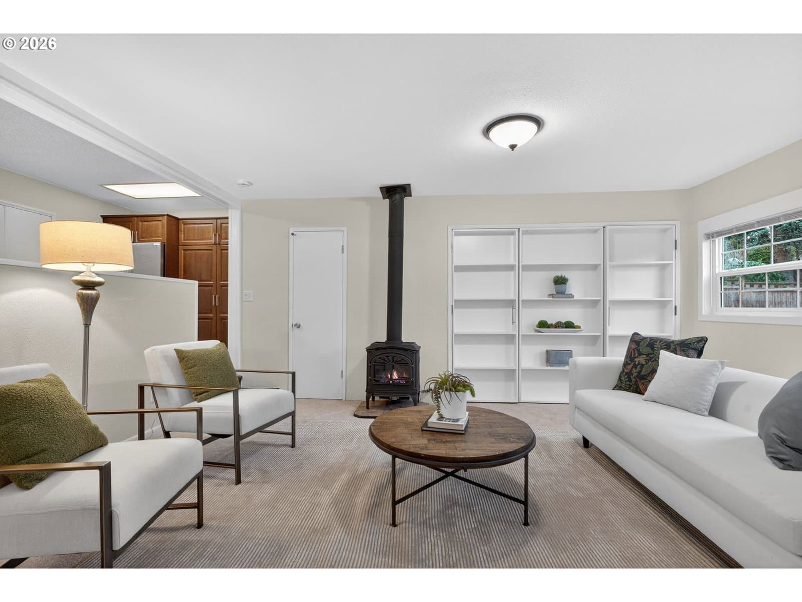 Cedar Hills jewel box! One level living at its best on this beautiful tree lined street in a quiet, sought after neighborhood! This charming ranch lives larger than it appears, sitting on a spacious 8,200+ sq ft lot with ample room to garden, play, or entertain. The welcoming entry opens to a bright living room featuring a fireplace, original built ins and dining space. Refinished hardwood floors and fresh interior paint create a light, inviting atmosphere throughout. The generous cook’s kitchen is stylish and functional with granite counters, stainless steel appliances, and abundant storage. Designed with flow in mind, the kitchen connects seamlessly to the large family room with woodstove and brand new carpet. A “hidden” laundry closet and nearby full guest bath add everyday convenience. You will love the multi purpose bonus room off the family room – an ideal space for a home office, craft room, or playroom! Relax in the primary bedroom, which opens to the backyard patio to enjoy your morning cup of coffee; two additional bedrooms and full bath with tub/shower combo & updated lighting. Step outside to a private, fenced backyard oasis featuring an expansive stamped concrete patio, whimsical garden paths, and mature plantings—perfect for alfresco dining or quiet relaxation. Need storage? An attached large storage room provides additional space for bikes, tools, or hobbies. Central A/C; major updates include new carpeting (2026), refinished hardwoods (2026), new sewer line (2024), new water heater (2023), and new roof (2020). HOA is for RV parking lot south of property. Stroll or bike to nearby Center St park with tennis and basketball courts, a playground with swings and a walking path! Enjoy shopping in nearby downtown Beaverton & newly renovated Cedar Hills Crossing; easy access to public transportation and great freeway access!