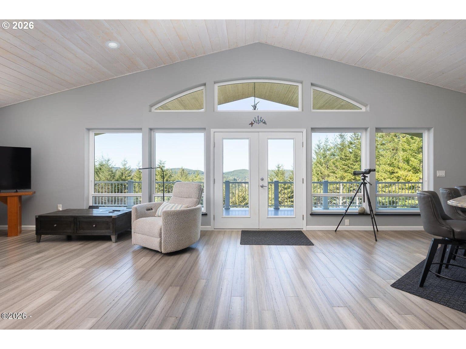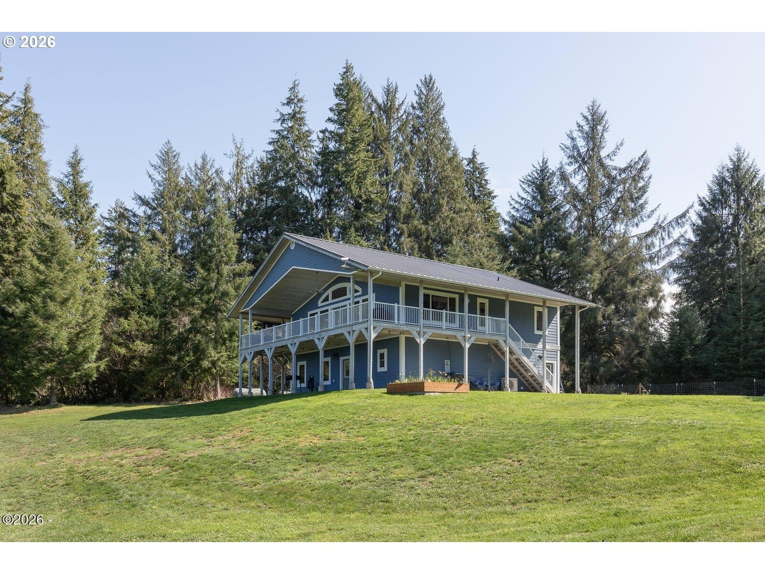 Experience ultimate privacy and country living with this stunning 2019 custom-built home, surrounded on two sides by Weyerhaeuser-managed timberland. Designed to maximize breathtaking views, the home features a reverse living floor plan, vaulted ceilings, and an open-concept main level. The gourmet kitchen is a centerpiece, boasting a massive granite bar, side-by-side double oven with built-in grill, and high-quality cabinetry with pull-outs. The living area opens to a large wraparound aluminum deck with a hot tub—perfect for entertaining or simply enjoying the scenery. The primary suite includes a spacious walk-in closet, while a second bedroom or home office overlooks the yard. The lower level provides a two-car garage, flexible basement space, and durable concrete surrounds for convenient access. Additional features include a whole-house propane backup generator, private well with excellent water, septic system with a 1,000-gallon reserve tank, and stackable washer/dryer. The property also offers well-maintained fir timber, a gated orchard with apple and cherry trees, an insulated hunting blind, and expansive lawn areas. Outdoor amenities include a finished outbuilding with a guest bedroom and wood stove, a detached 20x24 garage, and an insulated game cooler. This rare property perfectly combines modern comfort, privacy, wildlife, and usable timber, offering a one-of-a-kind country lifestyle. Location & Nearby Activities: Situated in the heart of the Oregon Coast Range, just 4 miles north of Siletz, 20 minutes to Toledo, 30 minutes to Newport, and about 45 minutes to Lincoln City. Newport offers oceanfront attractions, the Oregon Coast Aquarium, historic bayfront shopping, fine dining, and recreational activities such as boating, fishing, hiking, and beachcombing. The surrounding area is known for its serene atmosphere, long-time neighbors, and a mix of small farms, pastureland, and timber properties, providing a peaceful rural lifestyle with wildlife and nature