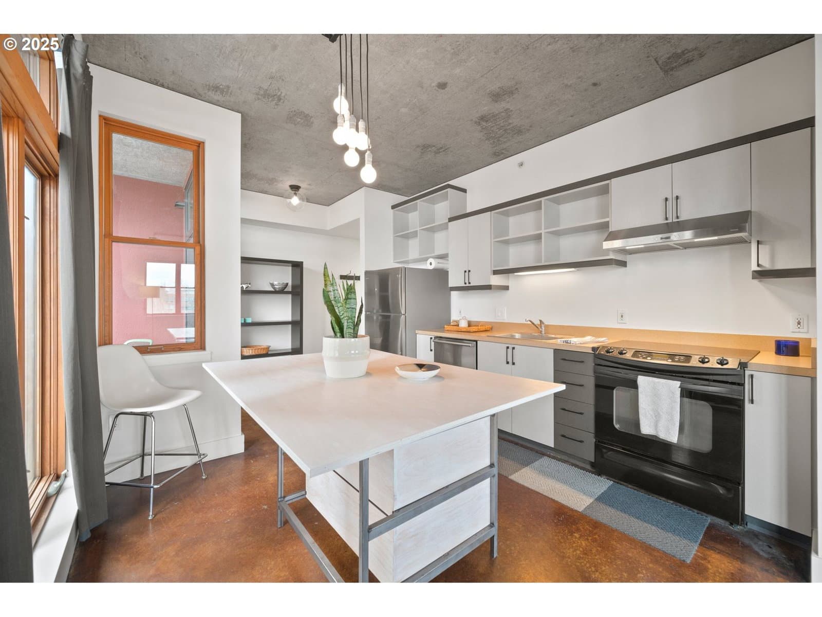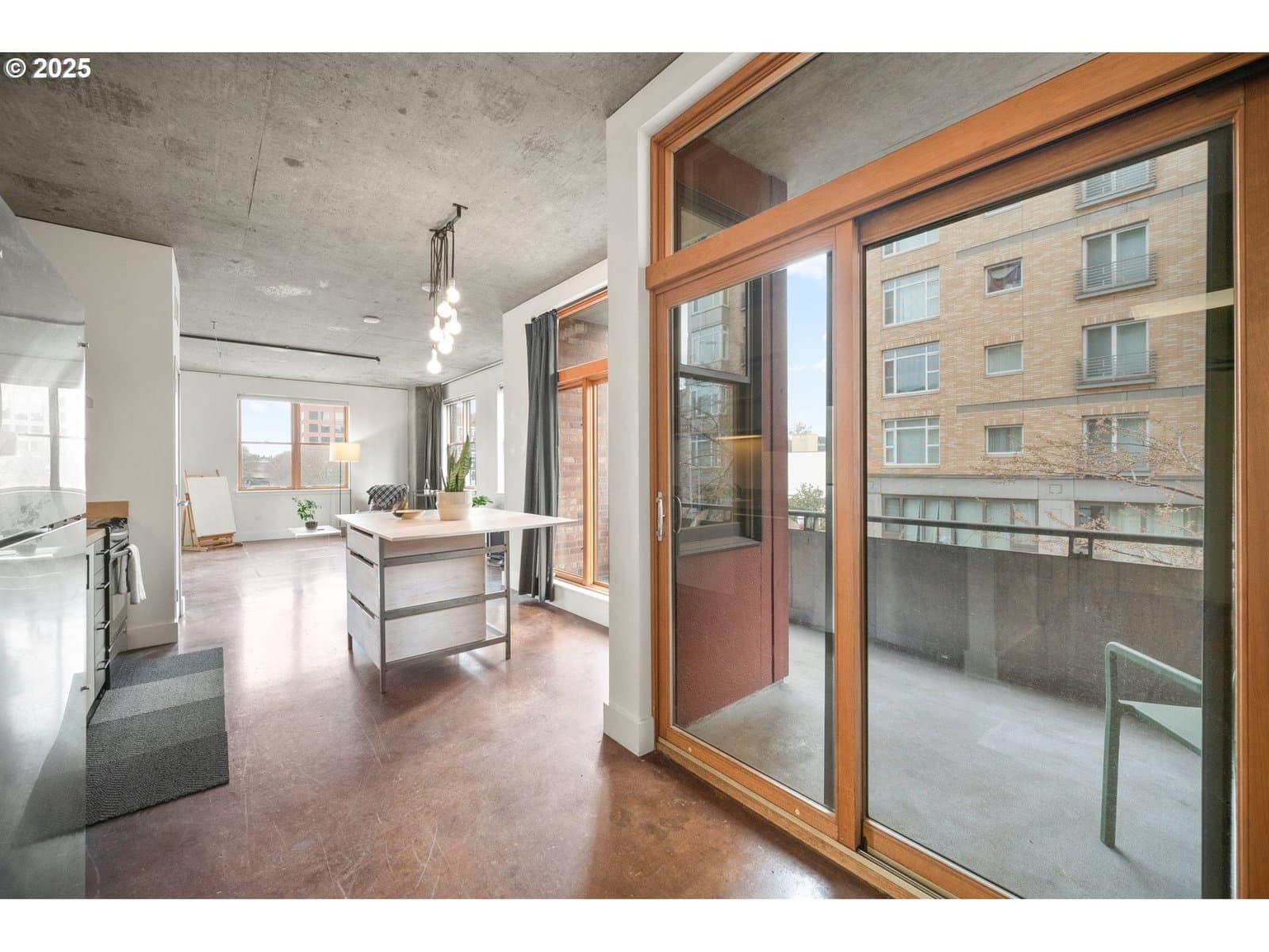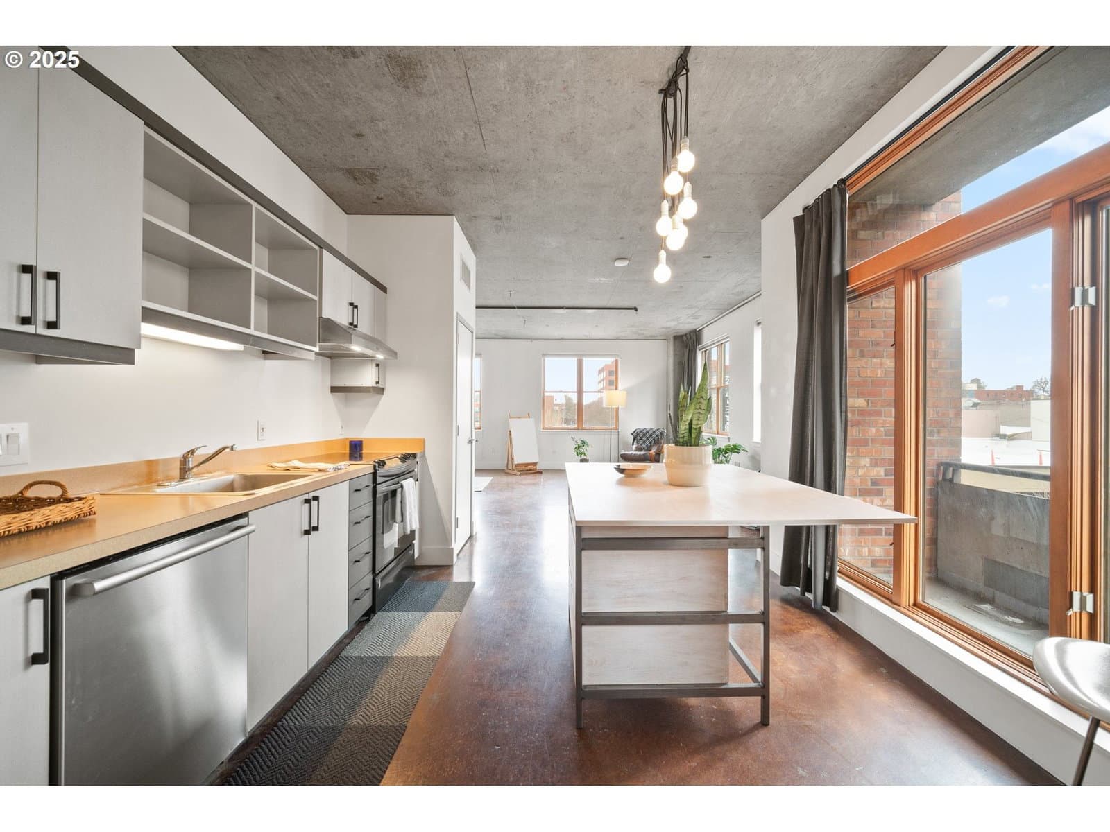 Urban Loft Living in the Heart of Portland! Stunning Artists Studio - Light, Bright & Full of Character! Welcome to the Stylish Old Town Lofts! This Spacious Corner Unit offers an Open, Airy Floorplan - Rare and hard to find! Complete with High Ceilings, Stained Concrete Floors, and Walls of Windows that Flood the Space with Natural Light. The Open-concept Layout, Modern Kitchen with a Stunning Island and Ample Storage make Entertaining Effortless. Storage Galore! Lots of Extra Storage in Entryway. Walk-in Closet off Bedroom. Laundry in unit. Lots to see! Step Outside to your Private Covered Balcony, Perfect for Morning Coffee or Evening Relaxation. Community Rooftop Sun Deck on the same floor, very convenient to this unit! Enjoy the perks of a well-managed, well-funded HOA in a secured building, complete with a deeded parking space and storage unit. Located in Old Town, right on the edge of the Pearl District, you’re just steps from art galleries, restaurants, shops, and nightlife. Plus, easy access to MAX Light Rail, Lan Su Chinese Garden, and Portland Saturday Market. Move-in ready with incredible value — don’t miss this one!