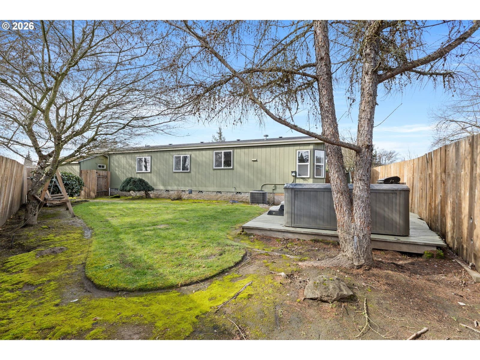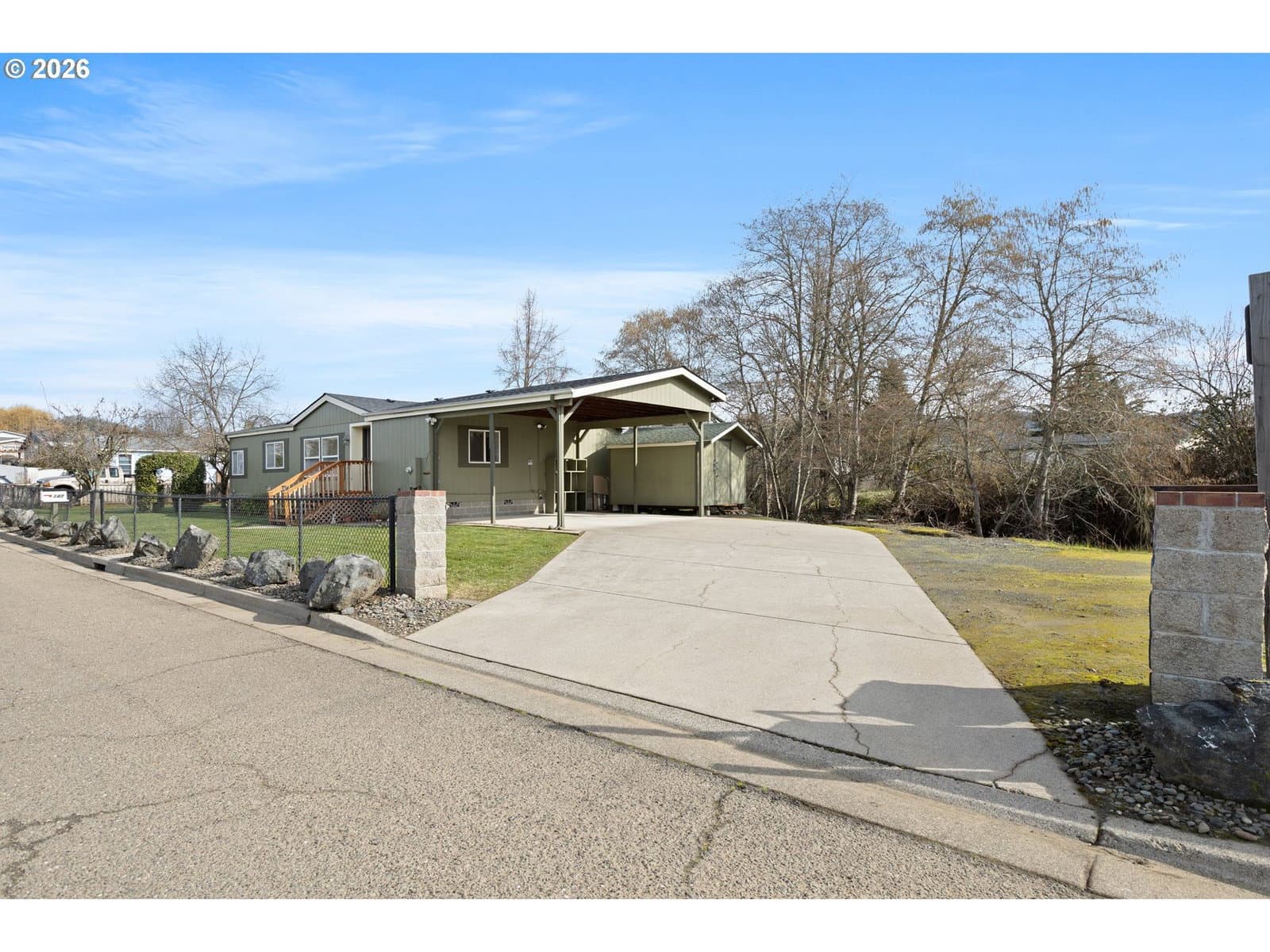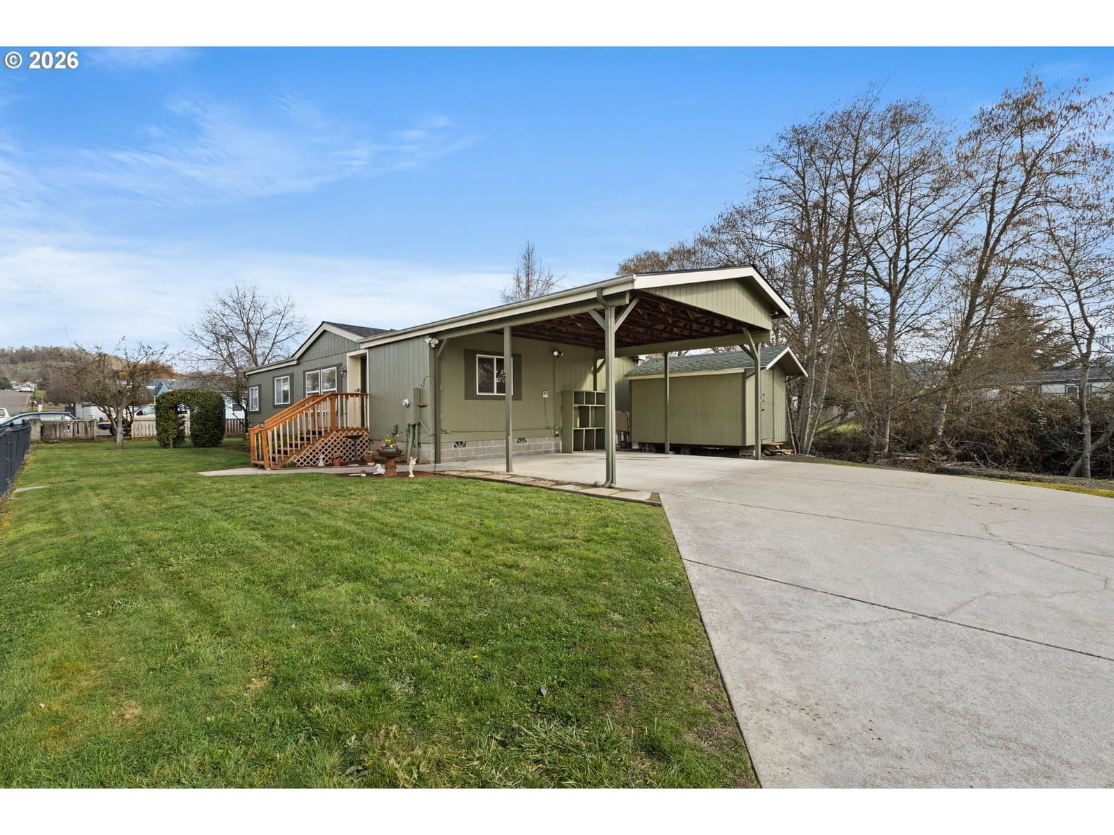 Beautifully updated double wide manufactured home on .47 acres with Roberts Creek frontage! This 3 bedroom, 2 bathroom, 1,296 sqft home offers comfort, privacy, and numerous recent upgrades including a brand-new roof, new interior paint, fresh exterior paint on the front, and brand new carpet throughout the main living areas and bedrooms. Seller is offering a one-year home warranty with an acceptable offer, providing added peace of mind.Thoughtfully designed landscaping enhances the home’s curb appeal and sets the tone for what’s inside. Step through the front door into a spacious living room that flows seamlessly into the dining area and a stunning kitchen featuring granite countertops, rich wood cabinetry, laminate flooring, and ample space for cooking and prep. The primary suite offers a nicely sized closet and a private en-suite bathroom complete with double sinks, laminate flooring, a relaxing garden soaking tub, and a step-in shower. The additional bedrooms are generously sized with ample closet space and fresh finishes. Just off the kitchen, you’ll find a convenient laundry area with washer and dryer included, storage racks, and an exterior door leading to the back deck. Step outside to your own private backyard retreat with mature landscaping, creek frontage, a hot tub, and a charming wooden swing—perfect for relaxing or entertaining. Front and backyard in-ground sprinklers make lawn care easy and efficient. The property also includes a large carport, abundant RV parking, and a powered shed ideal for storage, hobbies, or a workshop. Move-in ready and full of charm, this peaceful property offers privacy, space, and serenity. Don’t miss your opportunity to make it yours.