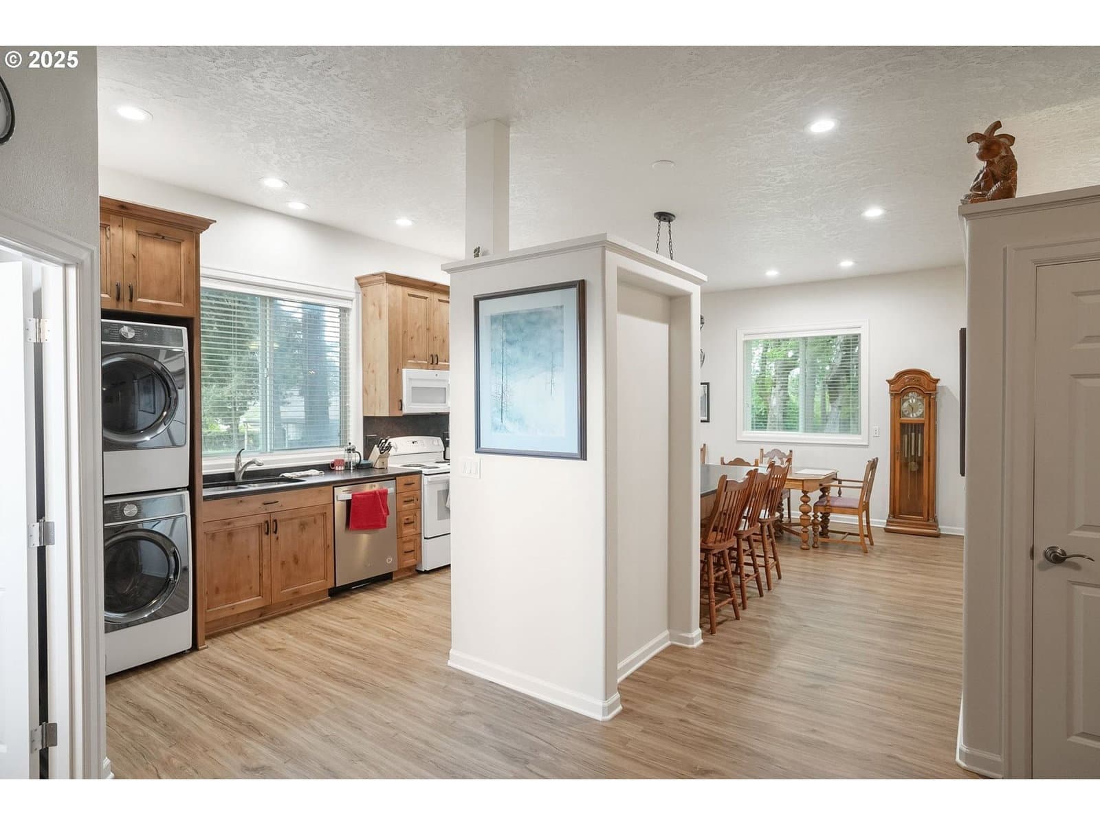 Discover the perfect blend of modern luxury & rural serenity in this "Shouse" (Shop-House). Tucked away on 2 private acres of timber within an upscale neighborhood, this hidden gem offers a unique lifestyle for those seeking both high-end finishes & functional space. The heart of the home is beautifully appointed kitchen featuring custom-built applewood cabinetry, sleek natural quartz countertop, and a generous island w/integrated built-ins perfect for hosting or daily prep. The interior is finished with luxury vinyl plank flooring through the main living areas, transitioning to cozy carpet in the bedrooms for ultimate comfort. No detail has been overlooked, thoughtful touches like interior closet lighting elevates the everyday living experience. Outside the property provides ample room to breathe among the trees, complemented by a convenient lean-to for additional storage or projects. Experience the privacy of a woodland retreat with the polished feel of a custom estate.