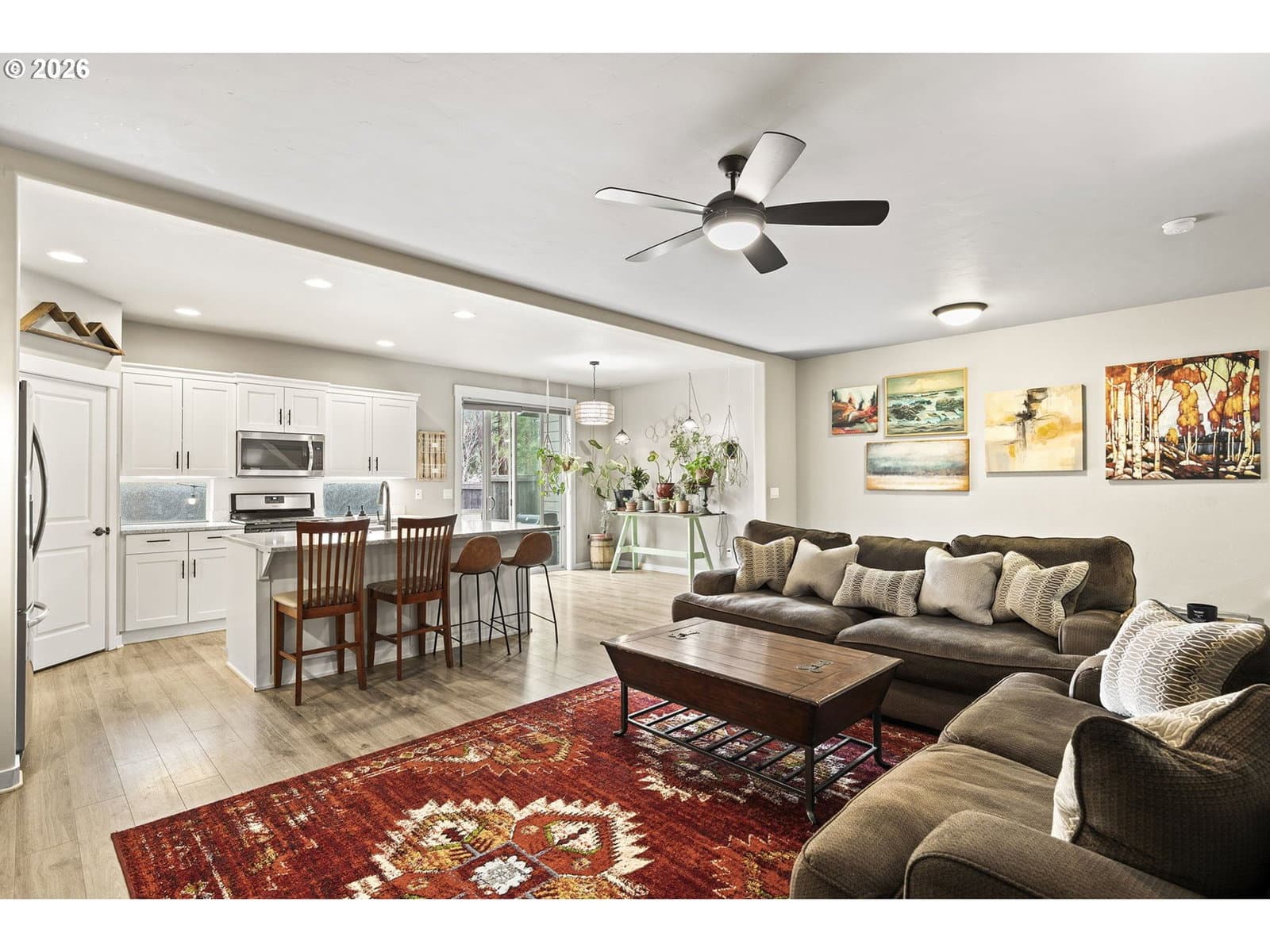 Turn-key and move-in ready, this elevated Stonegate townhome offers the ideal blend of style, comfort, and convenience in a prime Southeast Bend location. Close to shopping, restaurants, public trails, downtown Bend, the Old Mill District, and year-round Central Oregon recreation, this home is perfectly positioned for both daily living and weekend adventure. The bright open-concept layout features quartz countertops, stainless steel appliances, a pantry, island seating, and inviting living spaces designed for easy entertaining. Upstairs, thoughtful bedroom separation includes a spacious primary suite with a dual vanity and large walk-in closet. Air conditioning, a fully fenced backyard with updated xeriscaping, and an oversized two-car garage with generous additional storage add everyday comfort and functionality. Stonegate amenities include a community pool, park, playground, front yard landscaping, and walking trails.
