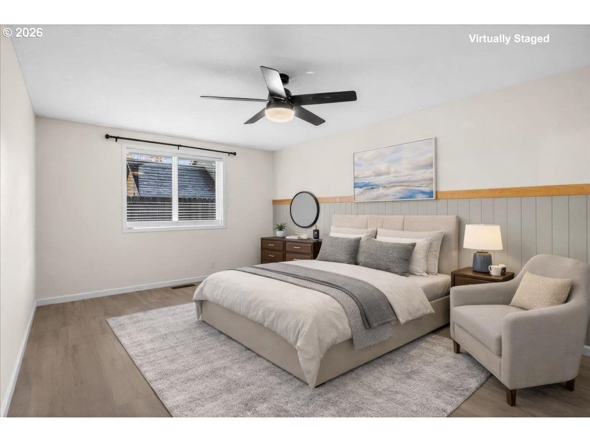 Beautifully updated single-level ranch home situated on a spacious lot in the heart of Old Town Forest Grove. This turnkey residence offers the perfect blend of modern comfort and small-town charm, all within walking distance to local parks & Joseph Gale Elementary School, downtown Forest Grove, and Pacific University. Enjoy the convenience of nearby shops, dining, and community events while living in a well-established neighborhood known for its tree-lined streets and welcoming atmosphere. The interior has been thoughtfully remodeled from top to bottom, with updates to every surface. The kitchen features stainless appliances, butcher block counter tops and subway tile backsplash, complemented by fully updated bathrooms, new flooring throughout, and fresh interior paint, creating a clean, cohesive, and move-in-ready living space. Step outside to a completely reimagined outdoor entertaining area designed for year-round enjoyment. The backyard boasts a covered entertaining space, low-maintenance turf, and a concrete retaining wall—ideal for gatherings, relaxation, or play. Additional upgrades include a new heat pump, providing energy-efficient heating and cooling for year-round comfort. A rare opportunity to own a beautifully updated home in one of Forest Grove’s most desirable and walkable locations. Schedule your showing today!