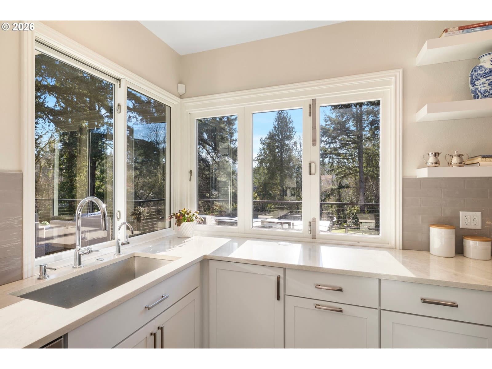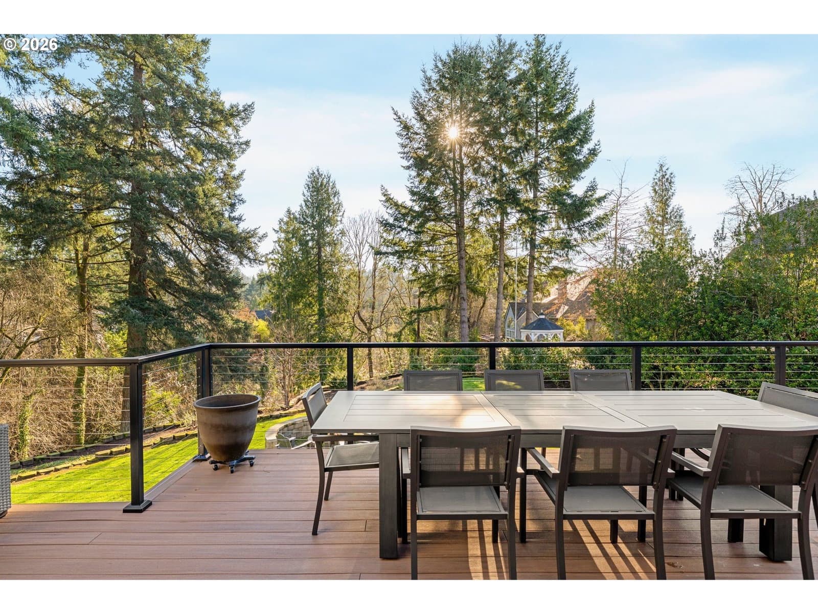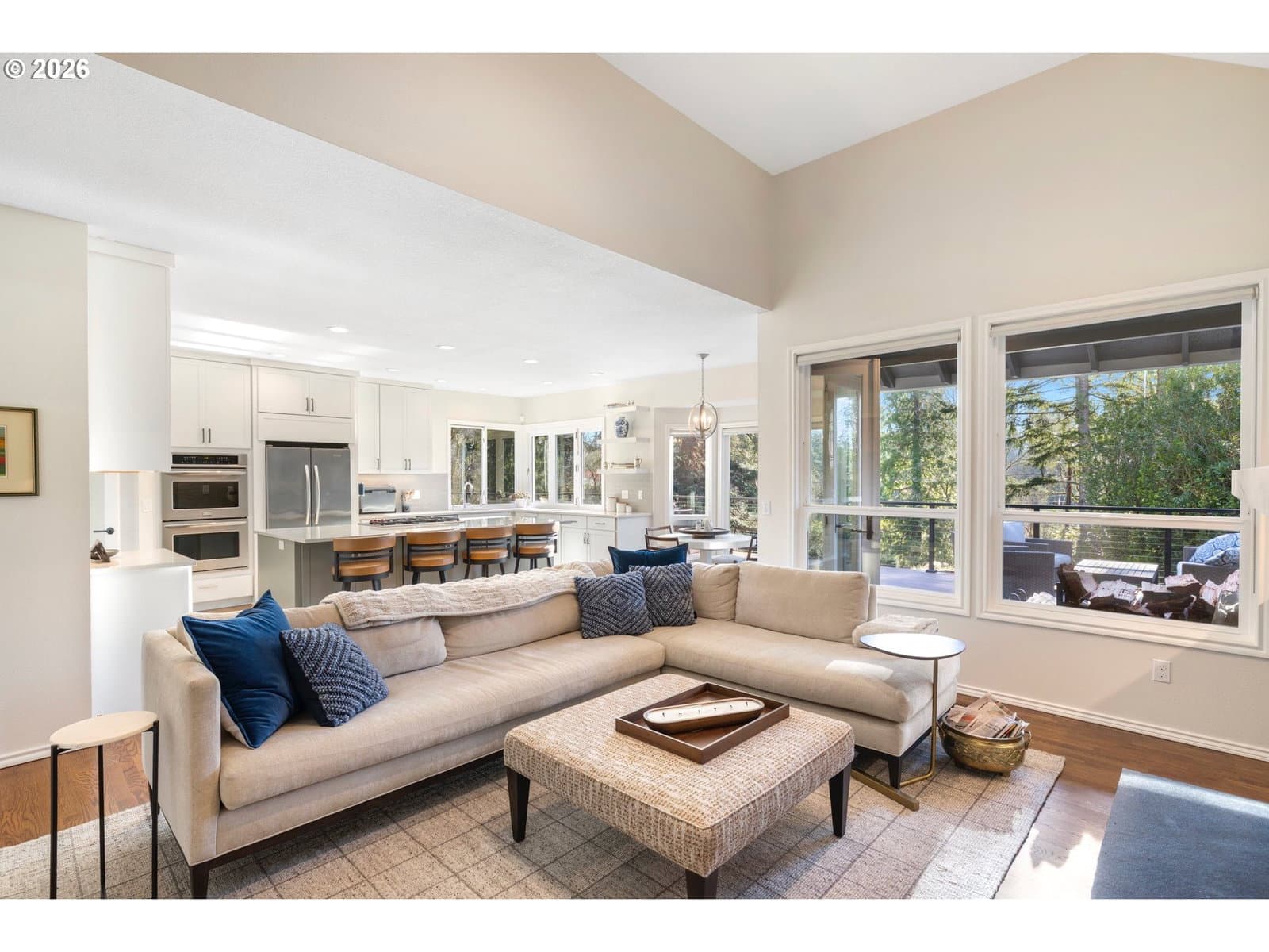 This stunning traditional sits on nearly a third of an acre at the end of a quiet cul-de-sac in the highly desirable Bridlemile neighborhood. A one of a kind floor plan and head to toe remodel that is meticulously maintained and enjoys a forest like green space off the back. The main level features a show stopping kitchen that has all new cabinets, quartz countertops, tile backsplash, a Wolf cooktop, a massive island, a walk in pantry, a breakfast nook, and a one of kind bifold window for access to the outside bar. The family room has a stunning custom gas starter fireplace with builtin cabinets, a beverage and wine fridge and expansive windows. The hard to find primary on the main enjoys high ceilings, deck access and an elegantly updated bathroom with two vanities, a free standing tub, a tile steam shower, and a walk-in closet with a high end custom builtins. The rest of the main level features a cozy den, an entertainer’s dining room, a large formal living room with a gas starter fireplace, a powder bathroom, and a functional laundry room equipped with a sink, fridge and ample counter and cabinet space. The upper level comes with three spare bedrooms, two beautifully updated bathrooms, and a large bonus room that can serve multiple purposes. The one of a kind exterior enjoys a stunning green belt and creek, mature trees and shrubs, and a large flat grass area perfect for outdoor activities. Entertaining is a dream with the new composition deck stretching nearly the entire width of the home, an outdoor bar, a covered area for all weather enjoyment and a inviting fire pit. The massive crawlspace is accessed with a standard size door and is perfect for storage, a shop or opportunity to finish for additional living space. Rest easy with the newer 50 year roof, oversized 3 car garage, high end cedar siding, fresh interior & exterior paint & more! Top of the line schools and only minutes from Hamilton Park, Multnomah Village, Oregon Zoo, OHSU, major highways & trails! [Home Energy Score = 2. HES Report at https://rpt.greenbuildingregistry.com/hes/OR10243711]