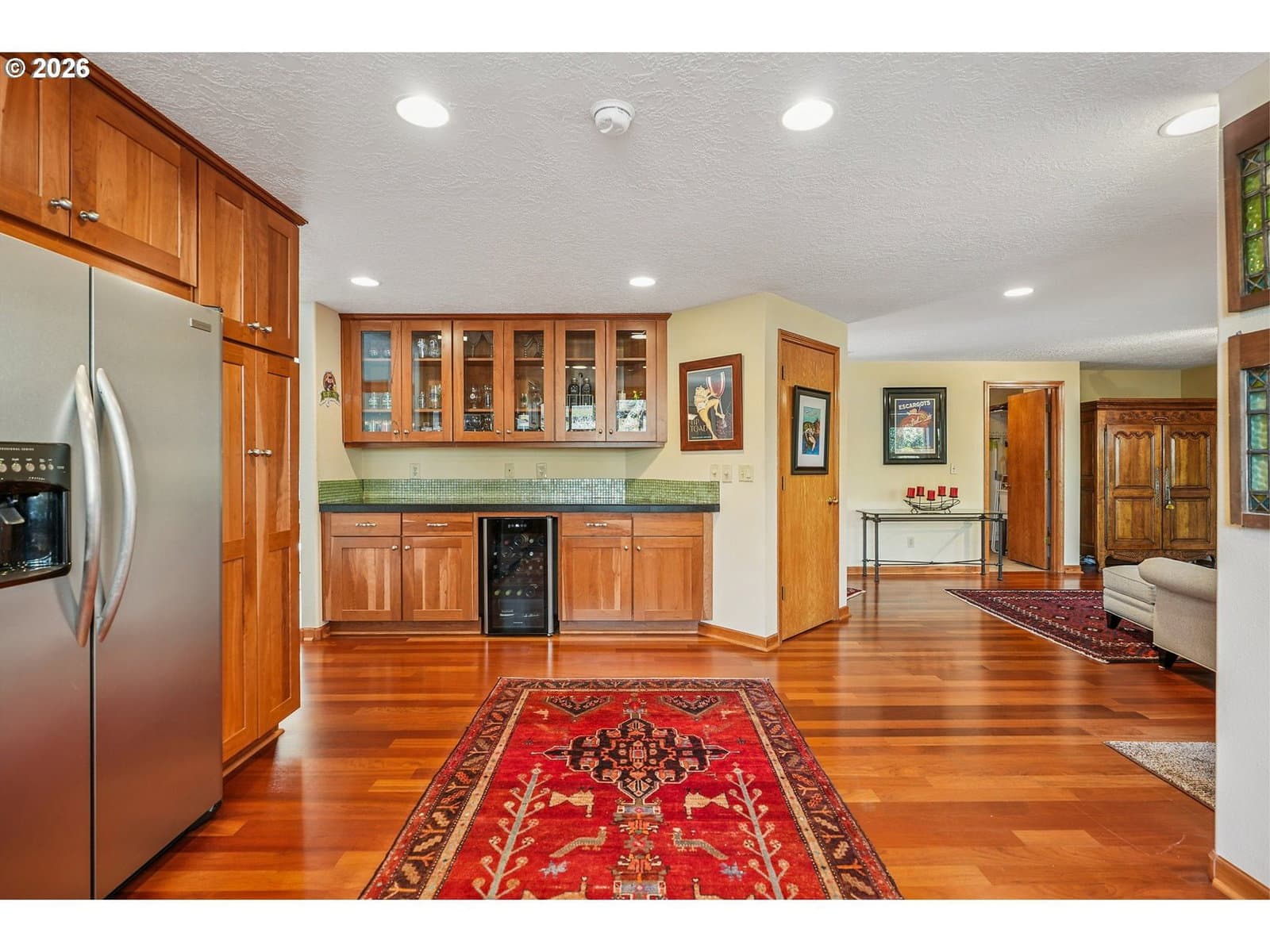 Oven, Gas Water Heater, Convection Oven, Dishwasher, Disposal, Free-Standing Gas Range, Free-Standing Refrigerator, Microwave, Plumbed For Ice Maker, Range Hood, Wine Cooler