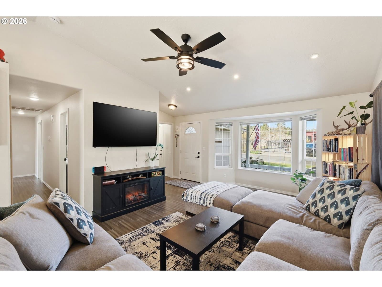 Located on a quiet, dead-end street in Cottage Grove, this well maintained single level home offers 3 bedrooms and 2 bathrooms. The spacious living room features vaulted ceilings and a bay window, creating an open and functional living space. The kitchen includes free standing gas stove, an eating bar, pantry, and abundant cabinet storage. New flooring has been installed throughout the main living areas. Vinyl windows and a forced air heating/cooling system provide year round comfort and efficiency. The bedrooms are nicely sized, and the layout offers practical, everyday livability.Outside, you’ll find a fully fenced backyard, covered patio, and a storage shed for tools and equipment. Driveway behind house allows for backyard access.Cottage Grove is known for its small town feel and access to outdoor recreation. Enjoy weekends at Dorena Lake, biking or walking the Row River Trail, or exploring the area’s historic covered bridges. This home is just minutes from the newly renovated Main Street, featuring art walks, local eateries, and classic small-town charm. All within a quick commute to Eugene, U of O, and Lane community College. If you’ve been looking for a solid starter home, this is the one! Move-in ready homes in this price range are becoming harder to find, making this a smart opportunity for first-time buyers, investors, or anyone looking for a well kept, low maintenance property in a great location. Agent is related to seller.