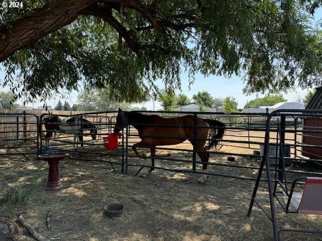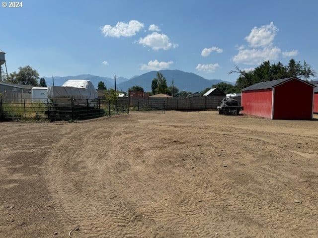 This unique property in Haines, Oregon, offers stunning mountain views from two privately fenced 100' x 100' lots and includes a partially completed shed approximately 16'x40' with full insulation, wiring, partial plumbing, wood stove and French doors that is not a legal dwelling yet. The compound also features an insulated 24' x 16' shop with electric heat, a 16' x 24' insulated garage, a 10' x 20' chicken shed, a 10' x 15' storage shed, greenhouse and a horse barn with a tack shed. These are all movable structures. There is ample space for RVs and other recreational vehicles, making it perfect for outdoor enthusiasts or those looking to create a versatile retreat.