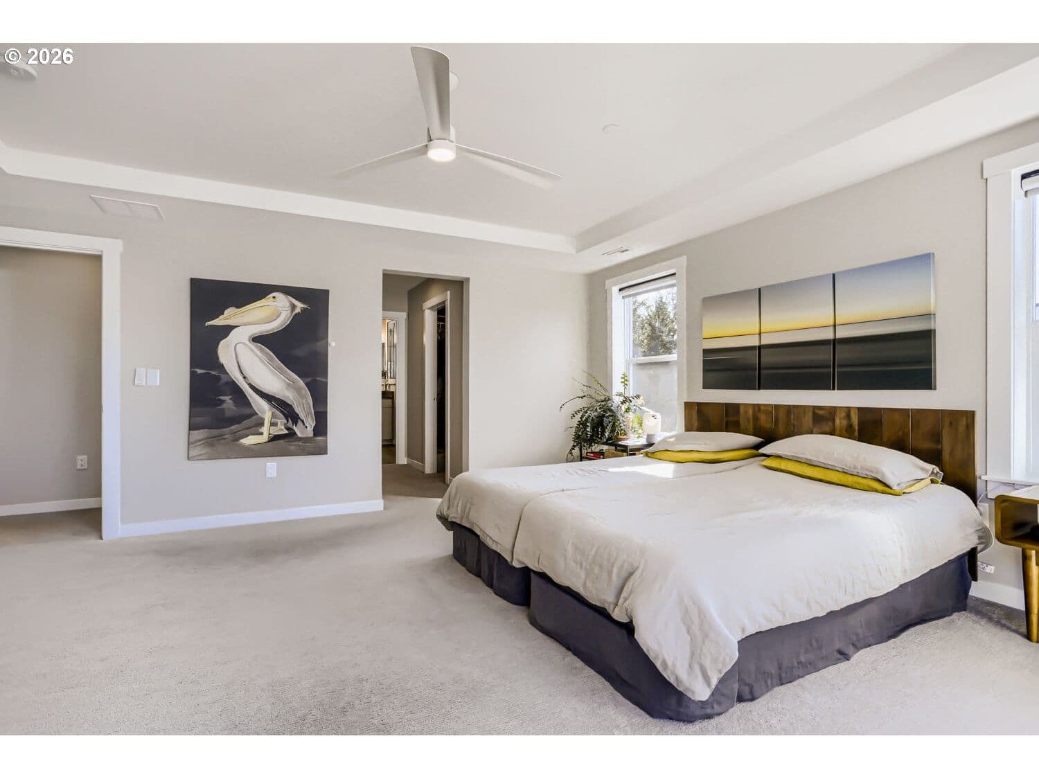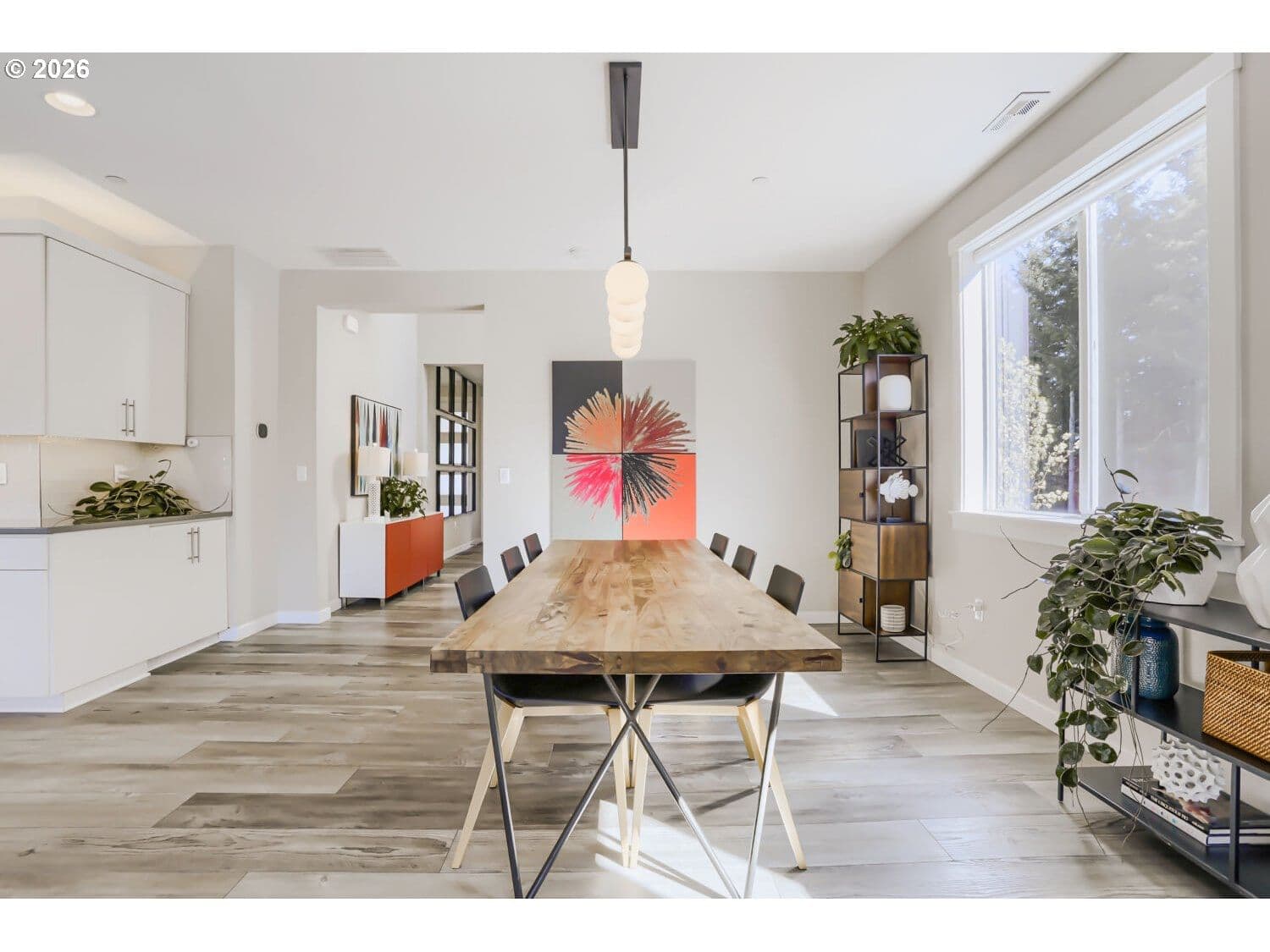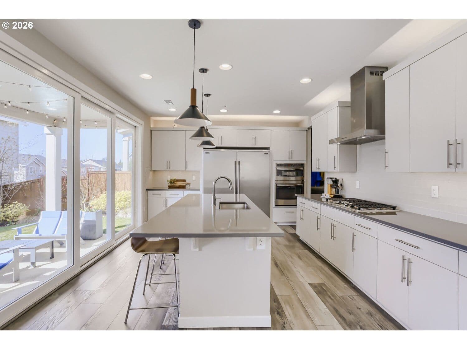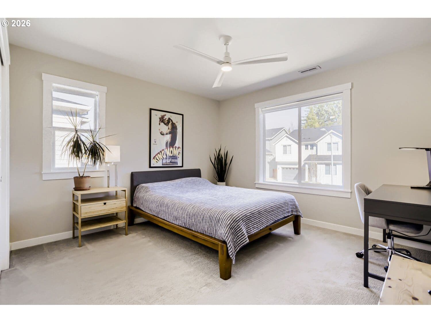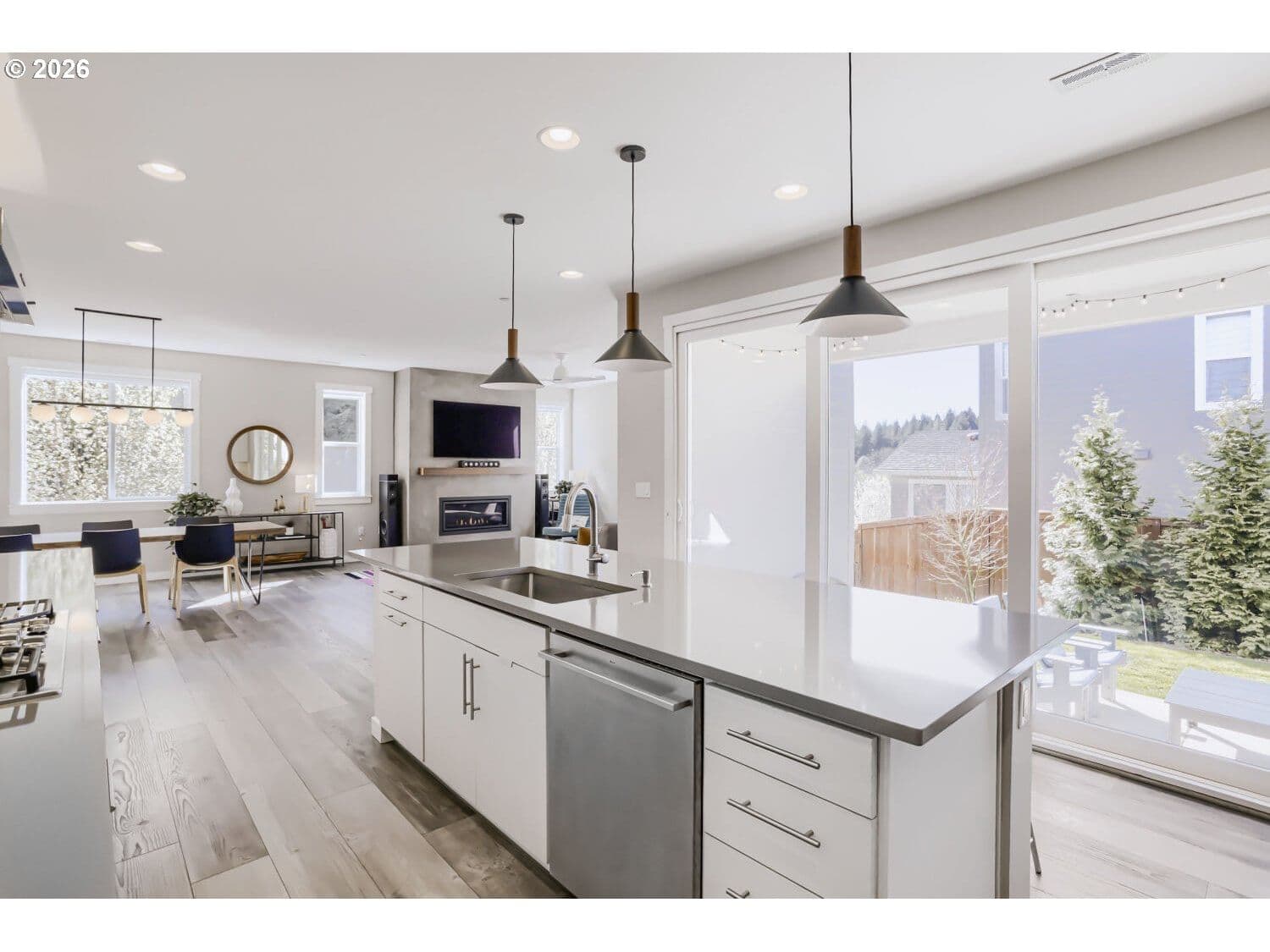 This light and bright corner-lot home offers a perfect blend of sophisticated design and functional living space, ideal for both everyday comfort and grand entertaining. The open main-floor layout seamlessly connects the generous dining room and inviting great room to a gourmet kitchen, where home chefs will appreciate the quartz countertops, gas range and oven, large pantry, and an extra-large refrigerator. For effortless indoor-outdoor flow, a large 3-panel slider opens directly to a covered patio and a beautifully landscaped, fenced yard, complete with raised garden beds for the green-thumb enthusiast and a matching utility shed. The home’s thoughtful design extends to its versatile living areas, including a downstairs bedroom and full bathroom perfectly suited for a home office or guest retreat. The second floor is equally impressive, featuring a spacious loft for a media room or play space, alongside a convenient laundry room with a built-in sink. The lavish primary suite serves as a true sanctuary, highlighted by an elegant tray ceiling, dual walk-in closets, and a spa-like ensuite bathroom with dual sinks and a massive walk-in shower. Beyond the living spaces, this residence is built for modern efficiency and organization. The three-car garage is a standout feature, boasting deluxe sealed flooring, built-in shelving, and dedicated wiring for EV chargers. Additionally, the home features fully owned solar panels that completely cover the electric bill, offering significant long-term savings. Perfectly situated for outdoor enthusiasts, this 5 bedroom, 3 bathroom residence is near Winkelman Park, Cooper Mountain Nature Park, and the Powerline trail, truly accommodating a modern lifestyle with ease.