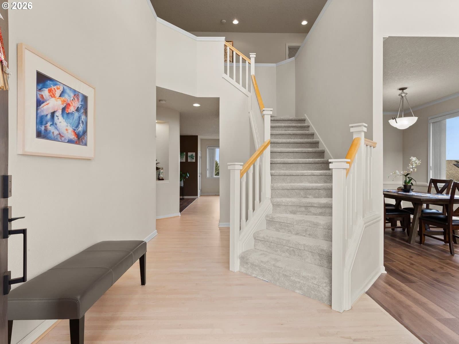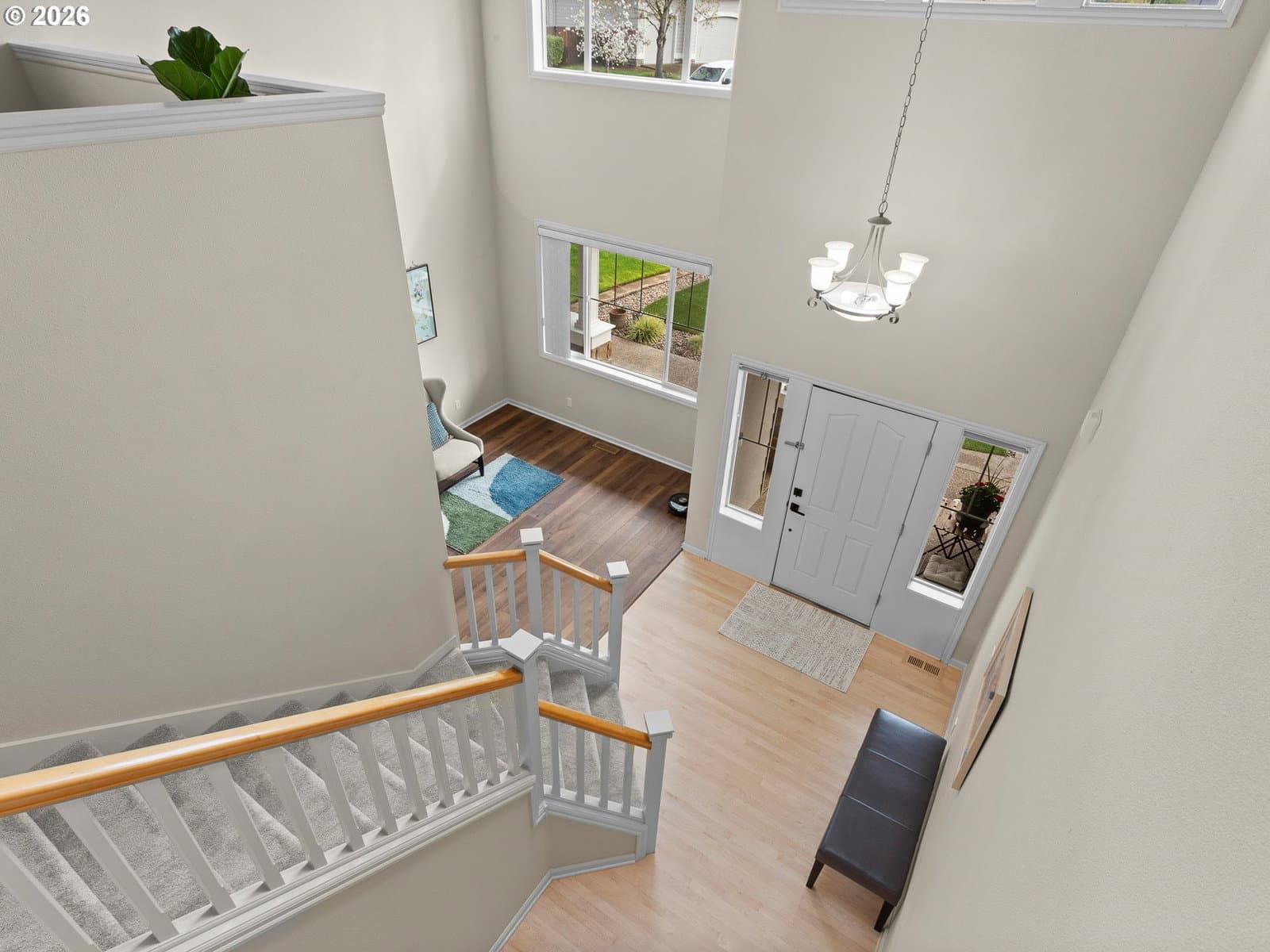 Complete replumb, encapsulated crawlspace, remodeled kitchen, artificial turf hardscape yard, 3-car deep garage with shelves, new carpet, luxury vinyl plank flooring in family room and living room, maple wood flooring entry way, downstairs bathroom, kitchen. Big walk-in pantry, laundry room upstairs, large cul-de-sac with path to private lake, covered deck stainless steel appliances. One owner, great neighborhood, great views from primary suite and bath, and 2nd bedroom.