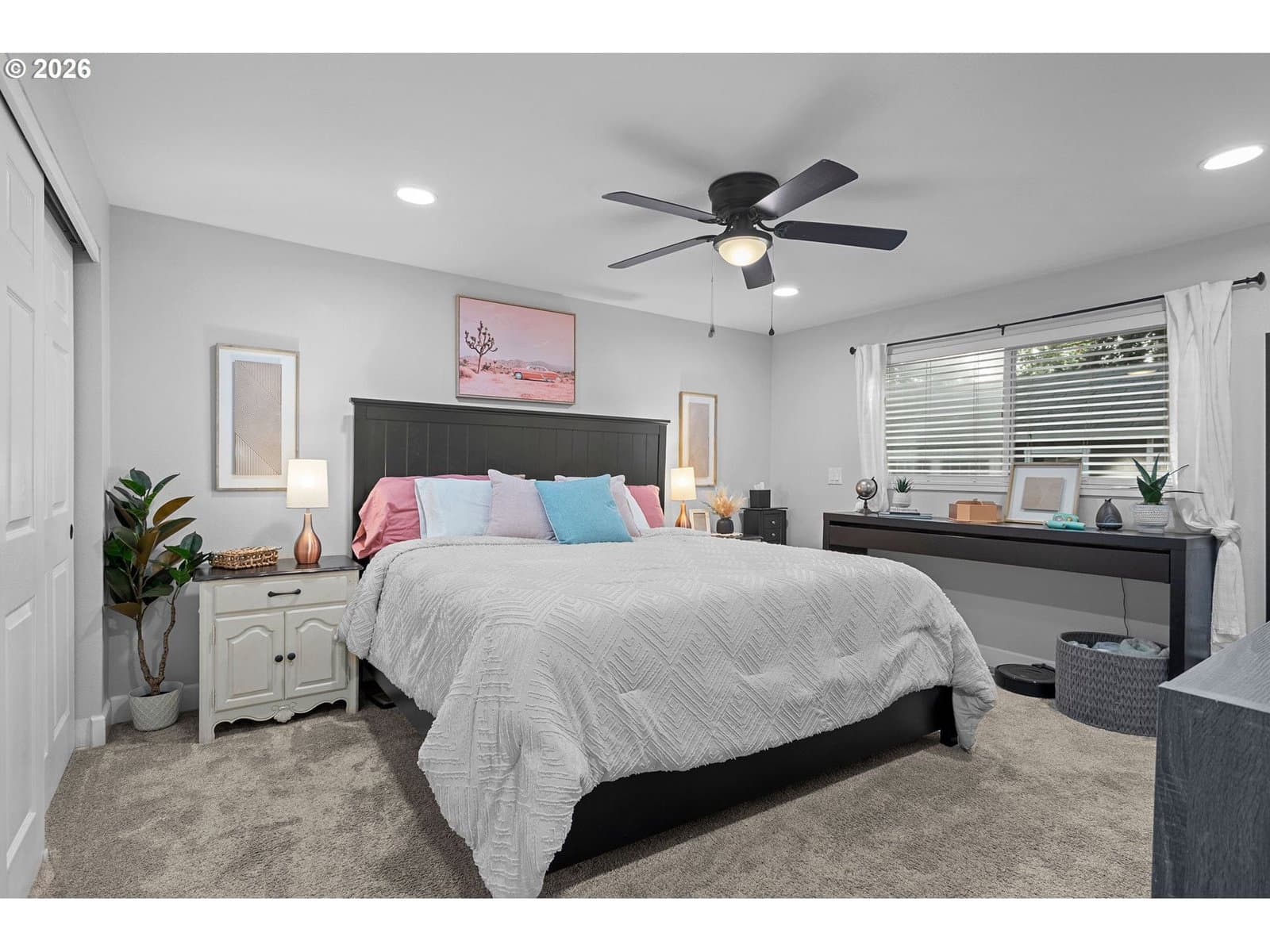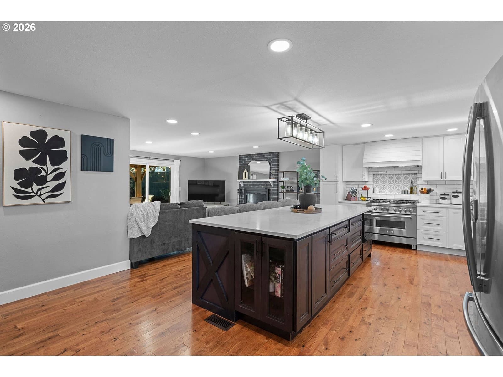 Set on a quiet cul-de-sac block, this beautifully updated Hollybrook home offers space, flexibility, and comfort in all the right places with 4 large bedrooms and 3 full bathrooms. The open high-performance kitchen features a 6-burner Zline gas range, quartz countertops, soft-close cabinetry, and generous workspace; perfect for everyday living and entertaining alike.Two updated primary suites provides excellent versatility, including a main-level suite with a highly accessible walk-in shower. Wood flooring spans the main level, while sizable bedrooms, significant closet space, and abundant storage throughout both levels ensure everything has its place. A cozy wood-burning fireplace adds warmth and charm.Enjoy year-round comfort with a new HVAC system, heat pump, and A/C installed in 2025, plus a brand-new roof in 2021. Durable newer fiber-cement siding adds long-term peace of mind. The covered backyard patio, firewood storage area, and additional storage shed create a private outdoor retreat. If you’ve been searching for large bedrooms, thoughtful storage, and flexible living spaces that adapt to your lifestyle, this home is a must-see. Schedule your private tour today! Approximately one mile from Historic Downtown Gresham, restaurants, shopping, hiking and more! Appliances stay with property.View 3-D walkthrough on RMLS directly.