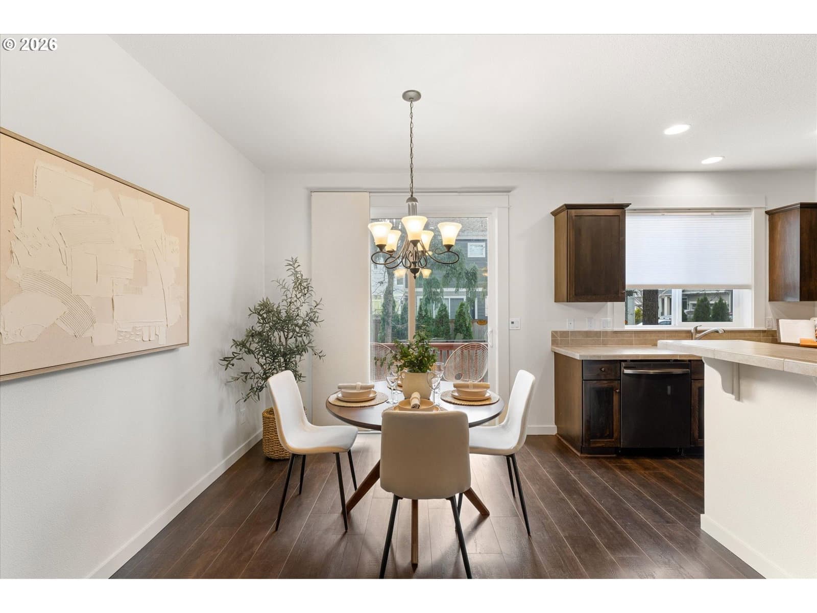 Beautifully updated and impeccably maintained, this one-owner open-concept home is designed for comfortable everyday living and easy entertaining. Recent updates include professional interior paint, new blinds, new carpet with premium padding, and refreshed bathroom fixtures.The kitchen features soft-close cabinets and Samsung appliances, including a new gas range and microwave, along with a newer dishwasher and refrigerator. A center island provides additional prep space, storage, and seating—making it a natural gathering place.The warm, inviting living room with a gas fireplace flows effortlessly into the dining area and kitchen. Sliding glass doors lead to a deck and fenced outdoor space, perfect for outdoor dining, morning coffee, summer get-togethers, or simply unwinding at home.Upstairs, you’ll find a versatile flex space, two additional bedrooms, and a convenient laundry room. The primary suite offers a peaceful retreat with a tray ceiling, en-suite bath, and a generous walk-in closet.Thoughtful upgrades include bath and laundry fans upgraded to countdown timers, wall safe, new 1/2 bath sink, fully finished garage with new opener. AC to keep you cool in the summer. All appliances including washer/dryer included, make this home move-in ready.Ideally located near parks, scenic trails, and shopping, this home also benefits from HOA dues that cover front yard and neighborhood landscaping—providing easy, low-maintenance living with ample parking in a desirable setting. [Home Energy Score = 7. HES Report at https://rpt.greenbuildingregistry.com/hes/OR10245214]