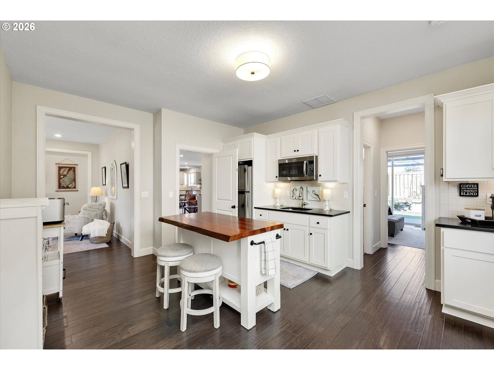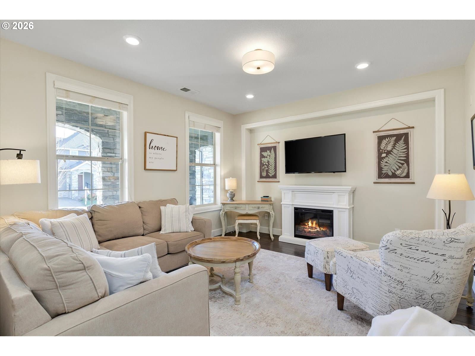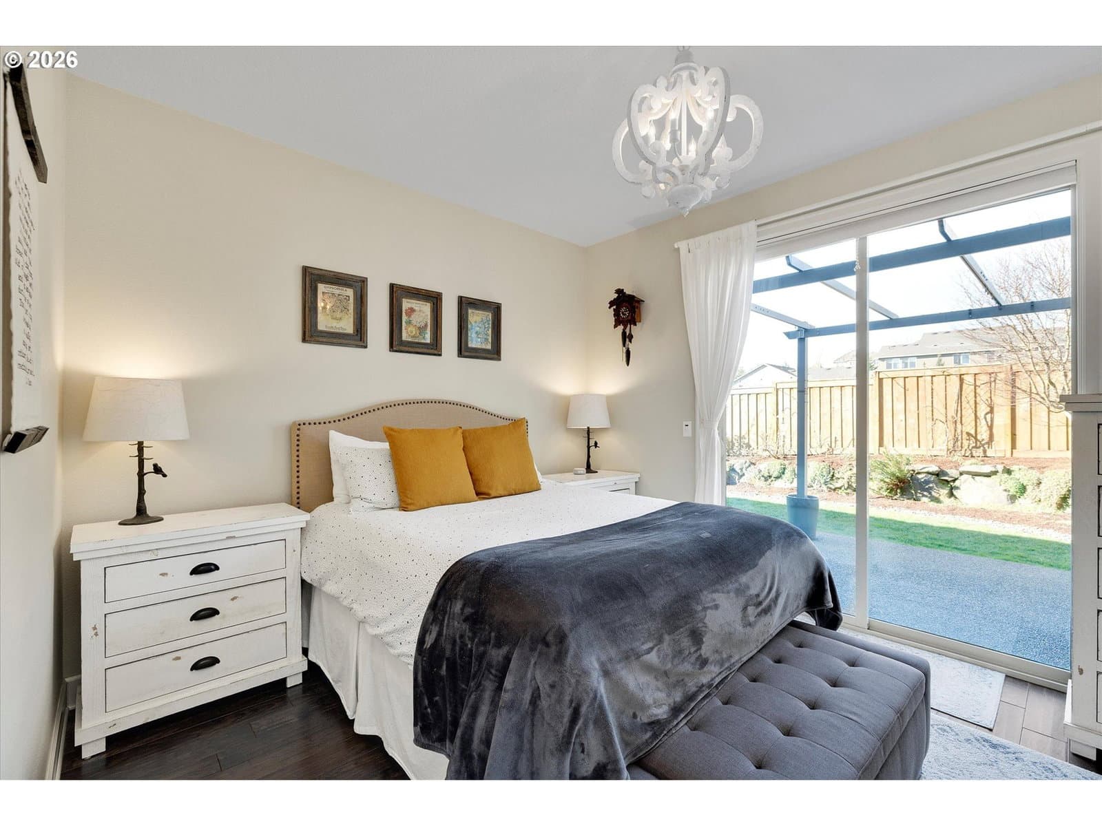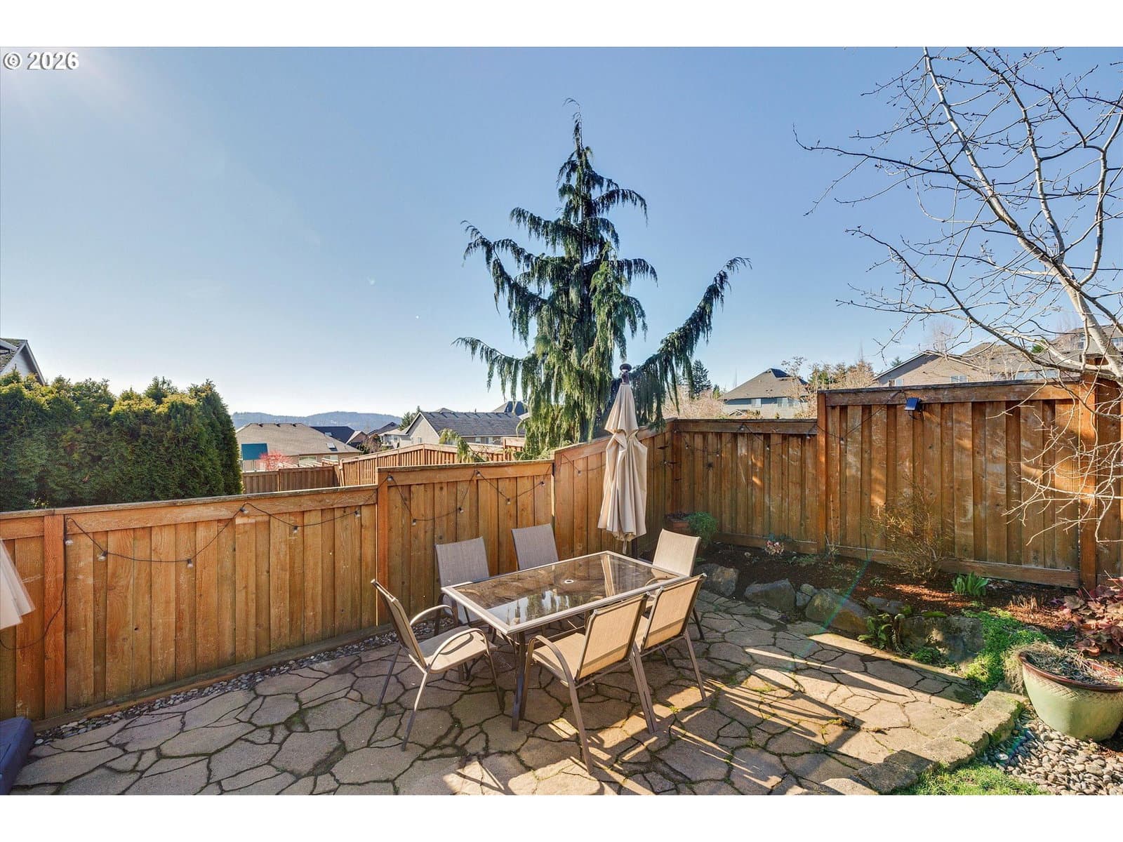 Built in 2015, this stunning 3,899 sq ft home offers a rare layout with an attached fully self contained 722 sq ft Multi-Generational Suite. This ground level suite is very private with its own entrance, dedicated garage, backyard with patio, pergola and sun-shade. Also includes 1 bedroom and on-suite bathroom, 15x13 spacious living room, stackable washer and dryer, generous kitchen with custom island and Brava oven & control over your own heat & AC, separate tankless water heater and engineered wood floors. This versatile space is ideal for multi-generational living, guests, college students, or add'l entertaining space for the home. The main home features 3176 sq ft, engineered wood floors on the main, EXPANSIVE kitchen/great-room concept, full of light, gas fireplace w/ built-ins and & 9 ft ceilings. Upstairs features 20X15 bonus loft room, primary suite with double sinks, & HUGE walk-in closet + an additional 3 bedrooms and 2 bathrooms (one Jack-n-Jill), large laundry room and plenty of storage thru-out the home. Located in a premier Happy Valley neighborhood with territorial backyard and Mt Hood view from upstairs & multi-gen suite front porch. Private HOA Park directly behind home. Enjoy the proximity to New Seasons, restaurants, trails, nature & 205....A truly one-of-a-kind opportunity offering space, privacy, and flexibility in an unbeatable location. All appliances are included.