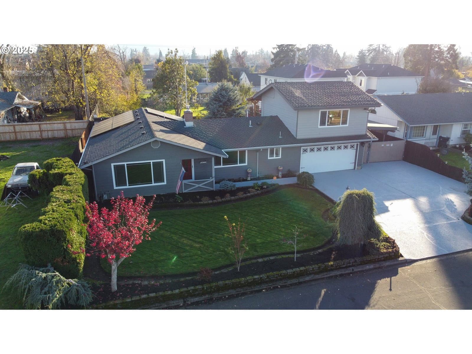 Welcome to a home that truly earns the phrase “move-in ready.” Thoughtfully upgraded from top to bottom, this standout property blends comfort, efficiency, and peace of mind with just the right touch of personality. Beautifully maintained exterior wrapped in security and smart convenience. The top-of-the-line VIVINT security system, complete with heavy-duty lighting and cameras, offers confidence 24/7. New Rainbird Bluetooth sprinklers keep both front and back yards effortlessly lush, while 28 owned solar panels quietly work overtime to keep summer utility costs pleasantly low. A CertainTeed Presidential Series triple laminate roof adds long-term durability, and the hand-brushed exterior paint keeps the home looking crisp and refined. The gated, covered RV parking is ready for your next adventure. Add in the tankless Rinnai water heater, horizontal gas furnace, and two-stage garage air compressor, and you have a home that’s as hardworking as it is handsome. Outside, versatile outbuildings offer endless options: a fully insulated and climate-controlled workshop, a solar-powered building housing a new generator (included!), a spacious storage shed, and a convenient garden shed with ramp access. Whether you’re a hobbyist, remote worker, or master organizer, these buildings are your new happy place.A parquet entry welcomes you into a bright 16x14 living room anchored by a cozy gas fireplace and accented by custom window coverings. The kitchen is both stylish and functional with stainless steel appliances, a gas range with griddle, built-ins, pull-outs, garden window, and a two-stage water filtration system. The dining area opens to a 9x20 covered Trex deck, perfect for morning coffee or evening gatherings. Upstairs, the primary bedroom features vaulted ceilings, plush Berber carpet, and a private Trex balcony complete with fire pit and charming custom wind chimes. Three additional bedrooms offer flexibility for family, guests, or office space. Possible Assumable VA loan