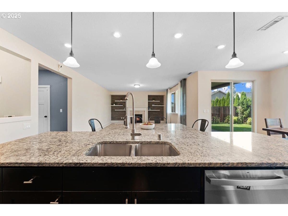 If you're looking for a spacious, MOVE-IN ready home this rare 5-bedroom, 3-bath Craftsman is a must-see. With nearly 3,000 sq. ft. of thoughtfully designed living space, this home offers the flexibility and comfort today's buyers need. A true HIGHLIGHT is the MAIN LEVEL BEDROOM and FULL BATH, ideal for guests, or a private home office. The open-concept kitchen is a DREAM for both everyday living and entertaining, featuring SLAB GRANITE counters, an oversized island, stainless steel appliances, and warm cabinetry. HUGE open BOUS ROOM, Fresh interior paint, BRAND NEW carpet, hardwood floors, central A/C, and a cozy gas fireplace make the entire home feel FRESH and welcoming. Step outside to a COVERED PATIO, SPRINKLER system—fully fenced yard, PERFECT for outdoor gatherings. A 2-car garage provides extra storage and convenience. All of this is located in a DESIREABLE neighborhood close to schools, shopping, and EASY freeway access. Homes with 5 true bedrooms and this much space don’t come along often—don’t miss your chance to make it yours.