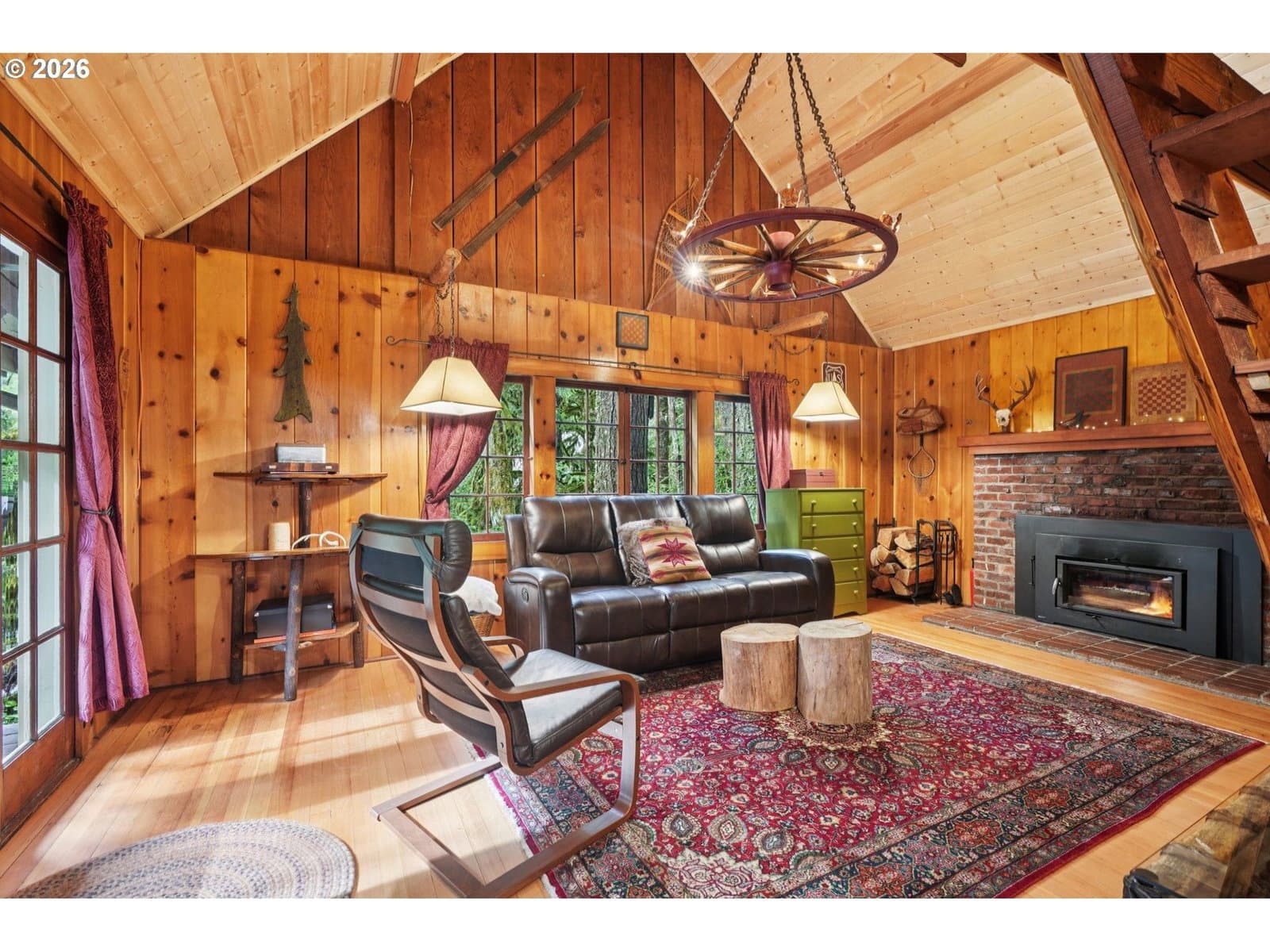Step back in time with this enchanting vintage cabin nestled along the serene banks of Camp Creek in the heart of Rhododendron, Oregon. This cozy 2-bedroom, 1-bathroom retreat captures the authentic spirit of classic Mt. Hood living, offering a rare opportunity to own a piece of mountain history on forest service owned land. Inside, soaring vaulted ceilings and warm wood finishes create an inviting atmosphere that feels both rustic and timeless. A beautiful brick fireplace anchors the living space, perfect for crackling fires after a day on the slopes. The main bedroom and an elevated loft sleeping area provide comfortable accommodations, while original log handrails and charming paned windows frame the lush forest surroundings, bringing the outdoors effortlessly inside. Step outside to a covered porch entry and a creek side deck where the gentle sounds of Camp Creek set the soundtrack for your mountain escape. An outbuilding provides convenient wood storage, and ample parking accommodates guests with ease. Location is everything, and this cabin delivers. Devils Canyon Falls is just moments away for hiking adventures, while Government Camp and Mt Hood slopes are only a short drive up the mountain. Hoodland Thriftway in nearby Welches handles all your grocery needs while there's also an assortment of delicious local restaurants for all your dining needs. Sold fully furnished and situated on leased land within the Mt. Hood National Forest, this turnkey retreat is ready for you to start making memories immediately. Don't miss this vintage Camp Creek charmer!
