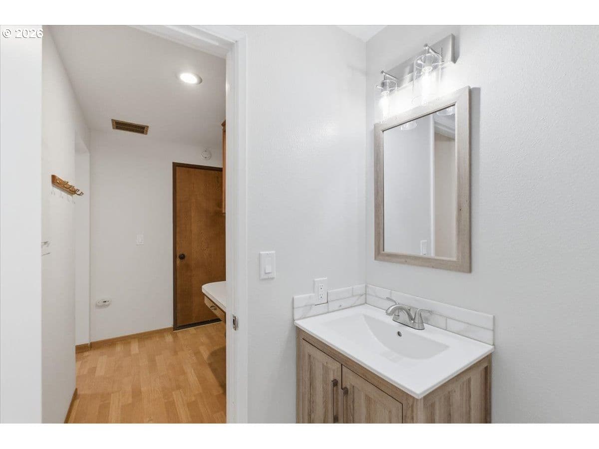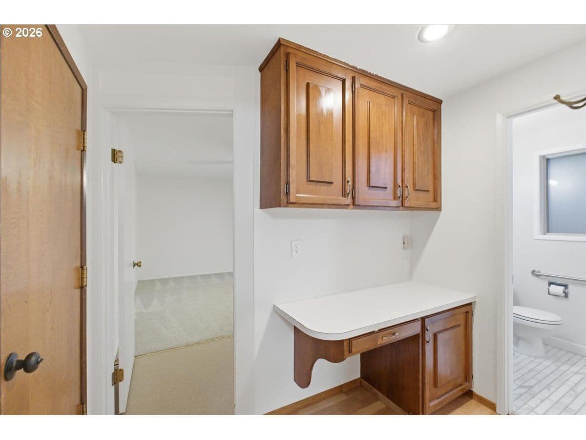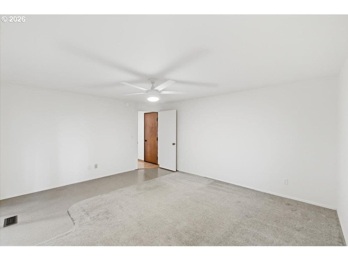 Tucked away in a private, tree-lined setting, this Northwest Corvallis home offers comfort, functionality, and an unbeatable location. Less than a 10-minute drive to Oregon State University and area schools, and under 5 minutes to shopping, grocery stores, and restaurants. A welcoming entry features a skylight and vaulted ceiling, with hardwood and carpeted flooring and ceiling fans throughout. The living room is warm and inviting with a cozy fireplace, marble hearth, and modern floating shelf. The generously sized kitchen opens through an arched doorway to the formal dining area, ideal for everyday living and entertaining. The owner’s bedroom includes exterior access to the new in 2024 Trex deck—perfect for morning coffee with peaceful forest views—and an attached newly remodeled bathroom with a modern walk-in shower. The family room also offers separate exterior access to the deck, providing excellent separation of space for students, visiting family, or guests. A tucked-away office area adds flexibility for work or study. The large two-car garage features built-in shelving, sink, and laundry area. Enjoy the fully fenced yard with a deck spanning the entire back of the home—ideal for entertaining and plenty of room for furry friends to play. Easy access to the community pool.