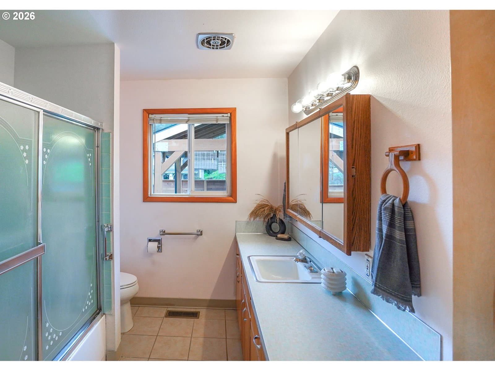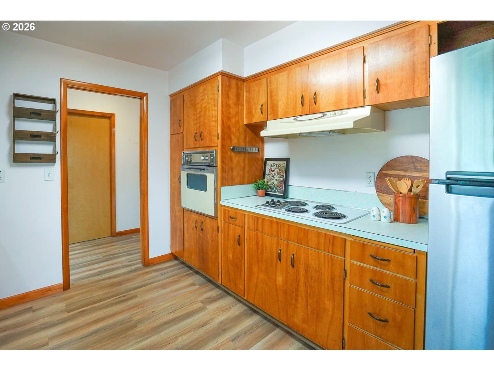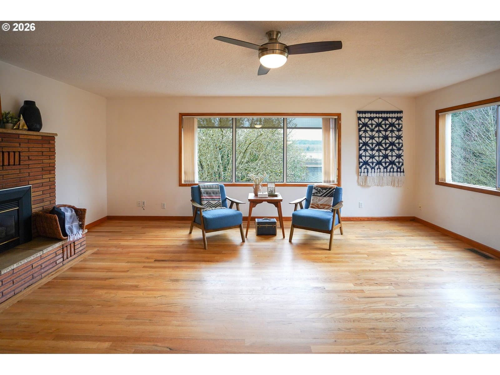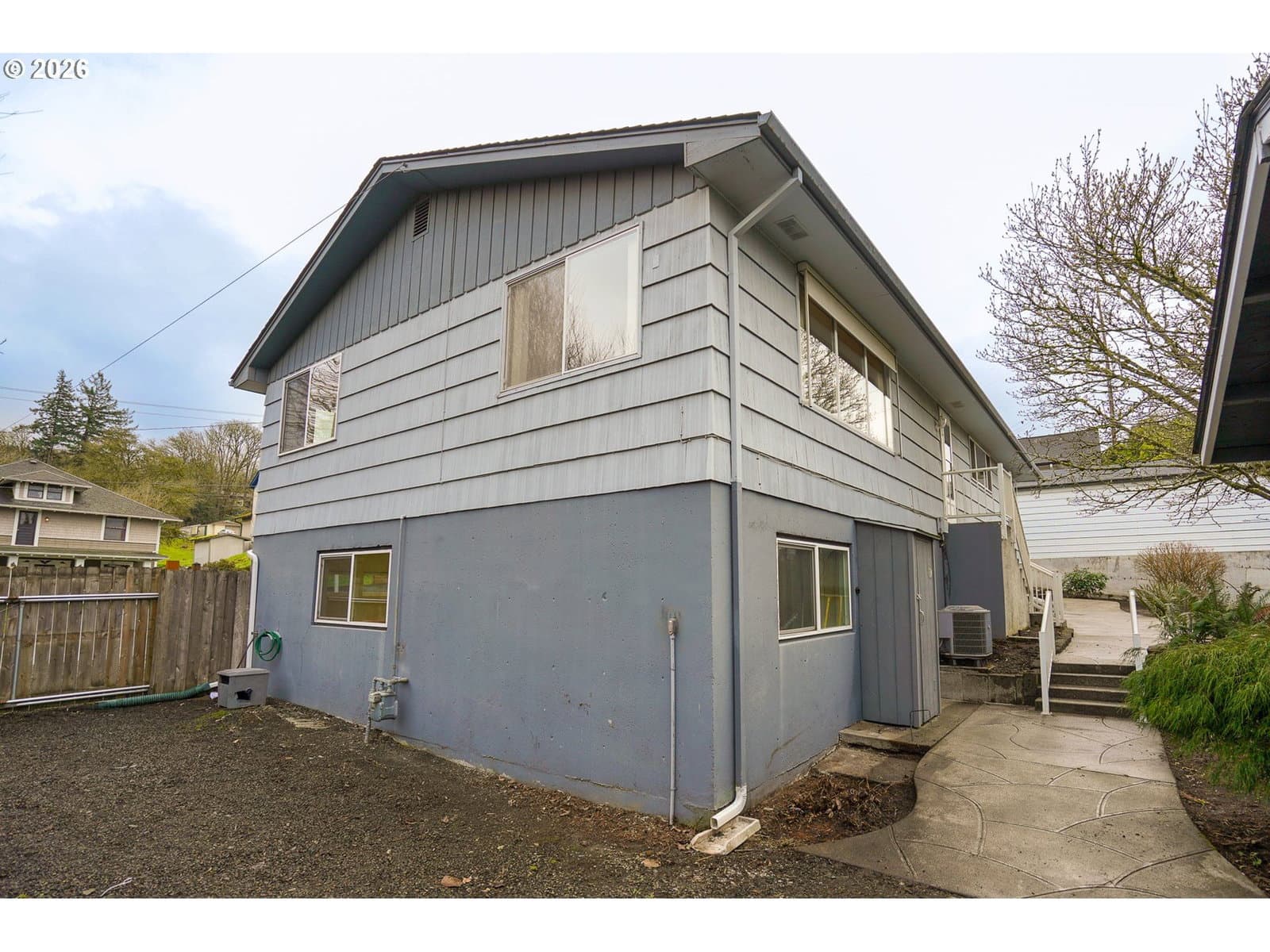 Charming 1961 mid-century modern home in a prime Kalama location, directly across from downtown and steps to Toteff Park. This 3-bedroom, 2.1-bath home features original floors, cabinetry, and counters in excellent condition, complemented by thoughtful updates. Light-filled living and dining spaces include a gas fireplace and large windows for comfortable everyday living.All bedrooms are on the main level with generous closets, including a flexible bedroom/office with an ensuite bath. A unique front patio living area adds functional outdoor space just off the kitchen. The heated, finished garage conversion offers versatile flex space and is zoned commercial, with potential to convert back to a garage.Outstanding parking includes two driveways with space for up to eight vehicles, plus room for RV, boat, or trailer parking and ADA-friendly main-level access. Fully fenced yard provides privacy. New roof in 2025. Pre-listing home, sewer, and radon inspections completed; details available. Walkable to downtown, parks, marina, and McMenamins, with easy I-5 access and approx. 30 minutes to Portland.