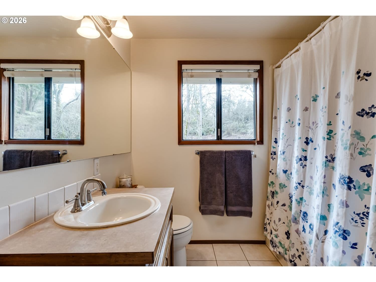 Charming home with beautiful wood accents, tucked away in a peaceful neighborhood! Enjoy the natural setting and seasonal views from every window! The main level features a vaulted living room with skylights, fireplace and dining area. The kitchen has an eating bar, pantry and stainless steel appliances. Spacious main level primary bedroom has a double closet. The second bedroom is vaulted with two closets and a skylight. Upstairs has a generous loft and bedroom with attached full bathroom. Brand new HVAC system in 2026! Low maintenance yard has a large deck, garden beds, small covered patio area and is partially fenced for extra privacy, plus a small year around creek to enjoy! The two car garage has built in storage and a utility sink.