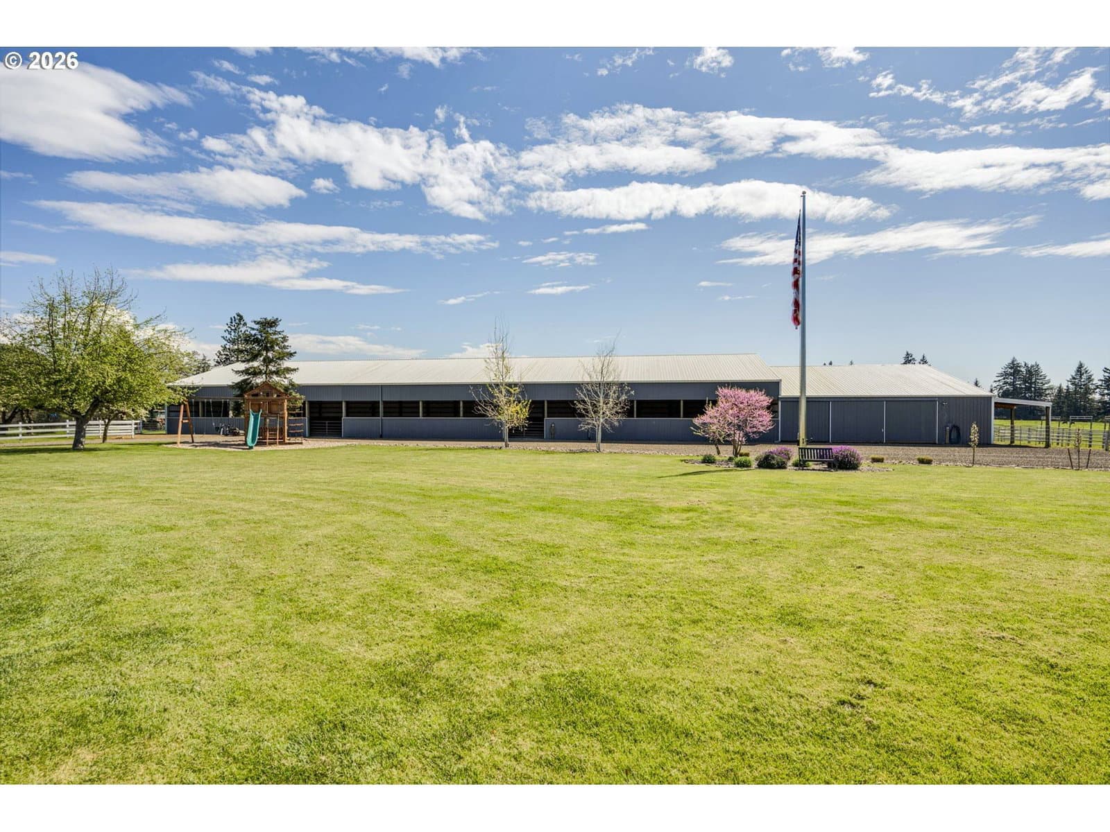 Where luxury living meets true country functionality, this exceptional, move-in ready equestrian & livestock property on just under 40 acres offers the complete package! The stunning 5,104 sqft custom 3 level home has 4 bedrooms, 4 full baths, office, formal dining, two primary suites (main-level and upper-level), additional upstairs family room, & a basement with exterior entry ready for so many options. The kitchen was beautifully remodeled in 2021, & more recent major updates include: metal roof, siding, windows, geo-thermal furnace, concrete patio, porch, railings & more. Details like quartz, farm sink, wine fridge, engineered bamboo flooring, arched walkthroughs are all features that add to the elegance but functionality of this beautiful home. Equestrian facility is equally impressive with a gorgeous barn with 6 12x12 matted stalls, stamped concrete walkway, 12x48 attached runs, heated tack room, washer/dryer hookups, wash rack with instant hot water, foaling stall, and easy-access hay/sawdust storage & manure dump. Ride year-round in the 60x180 covered arena with premium Equiloft footing. The barn is perfectly set up & will meet all your needs! Additional mixed-use stock barn, multiple covered shelters in pastures, & fenced/cross-fenced acreage make this ideal for horses, cattle, or multi farm use. Other outbuildings include a 36x48 insulated/heated shop with concrete floors, 220 power, built-in cabinets/workbench, storage loft, RV parking, & 16x48 lean-to for equipment storage, plus a 20x48 Quonset greenhouse with double-layer plastic. The back pasture is accented by beautiful oak trees, creating a serene and picturesque setting. And the rare bonus, a legal second residence! Approx. 1,431 sq ft with 2/3 bedrooms, updated kitchen, bath, laundry, and garage, ideal for multigenerational living, rental income, caretaker quarters, or guests. A truly turnkey legacy property where every detail has been thoughtfully done. Appointment only, do not drive up driveway.